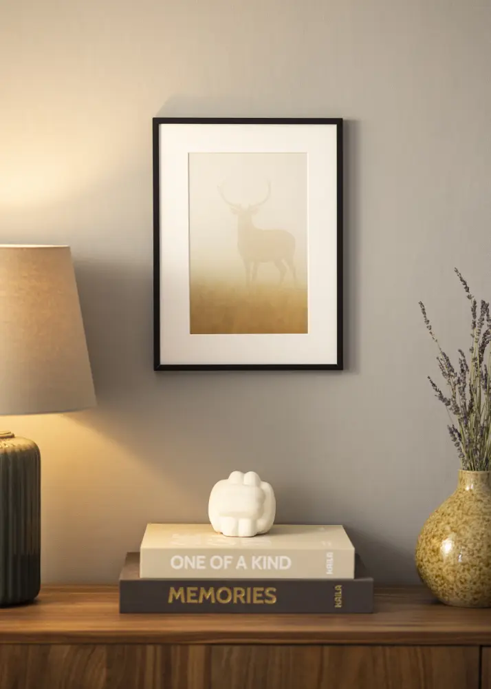 Helsingfors hat ein kantiges Profil mit einer mattschwarzen Oberfläche. Ideal, wenn du einen einfachen schwarzen Rahmen suchst, der einen stilvollen und eleganten Eindruck vermittelt.