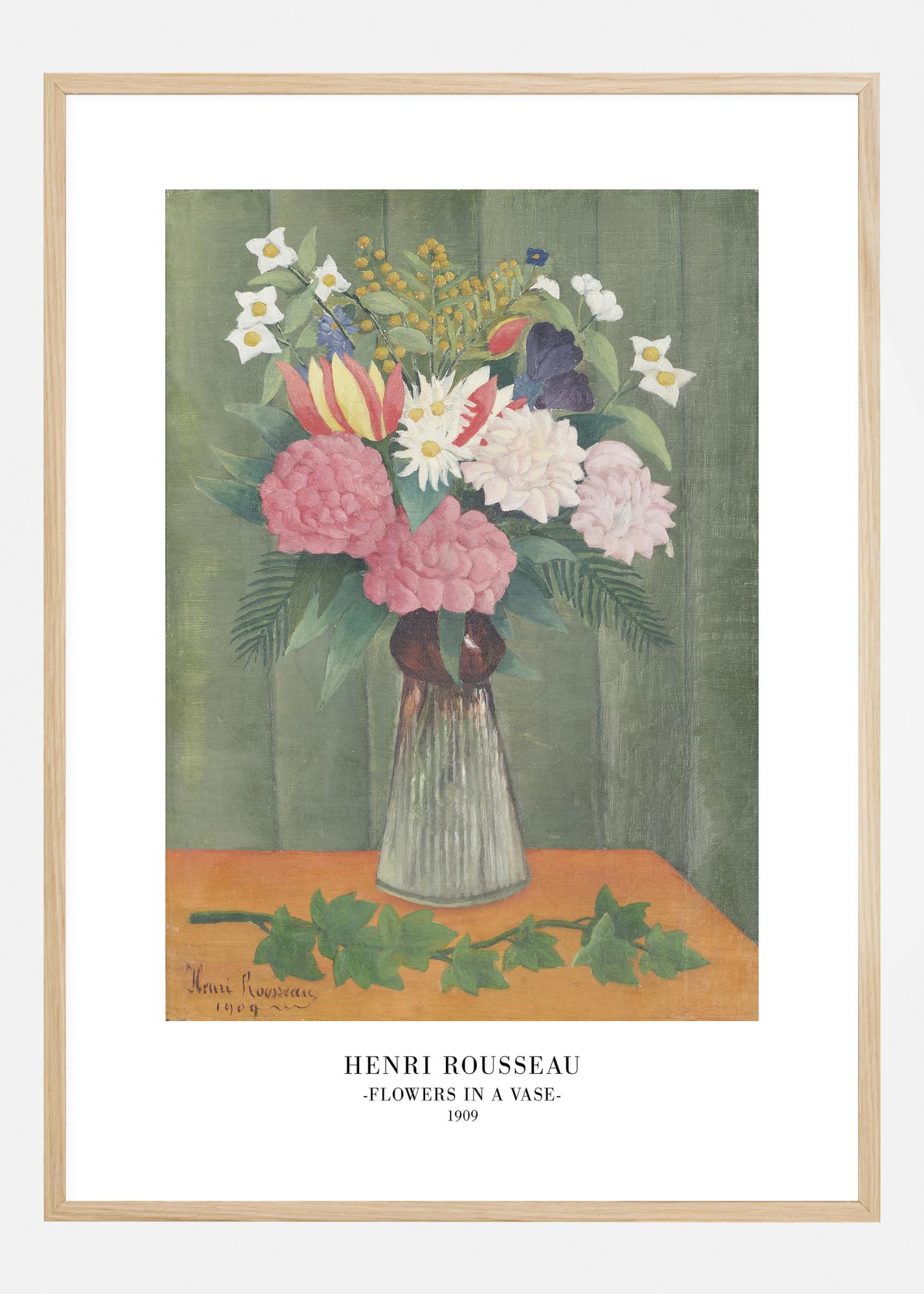 Dieses Poster von Henri Rousseaus "Blumen in einer Vase" aus dem Jahr 1909 zeigt einen schönen und farbenfrohen Blumenstrauß, dessen süße und detailreiche Darstellung an beruhigende Sommertage erinnert. Es ist ein ideales Druckwerk für diejenigen, die das Gefühl von natürlicher Schönheit und Frieden in ihr Zuhause oder ihren Arbeitsplatz einführen möchten und kann jedem Raum einen klassischen Charme verleihen.