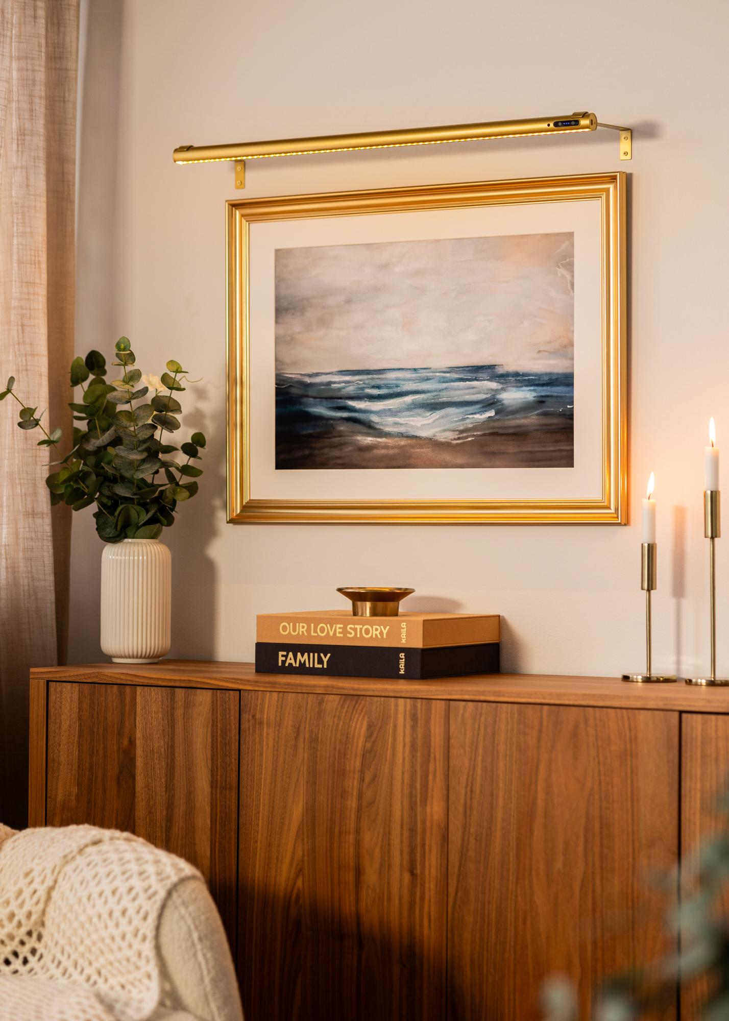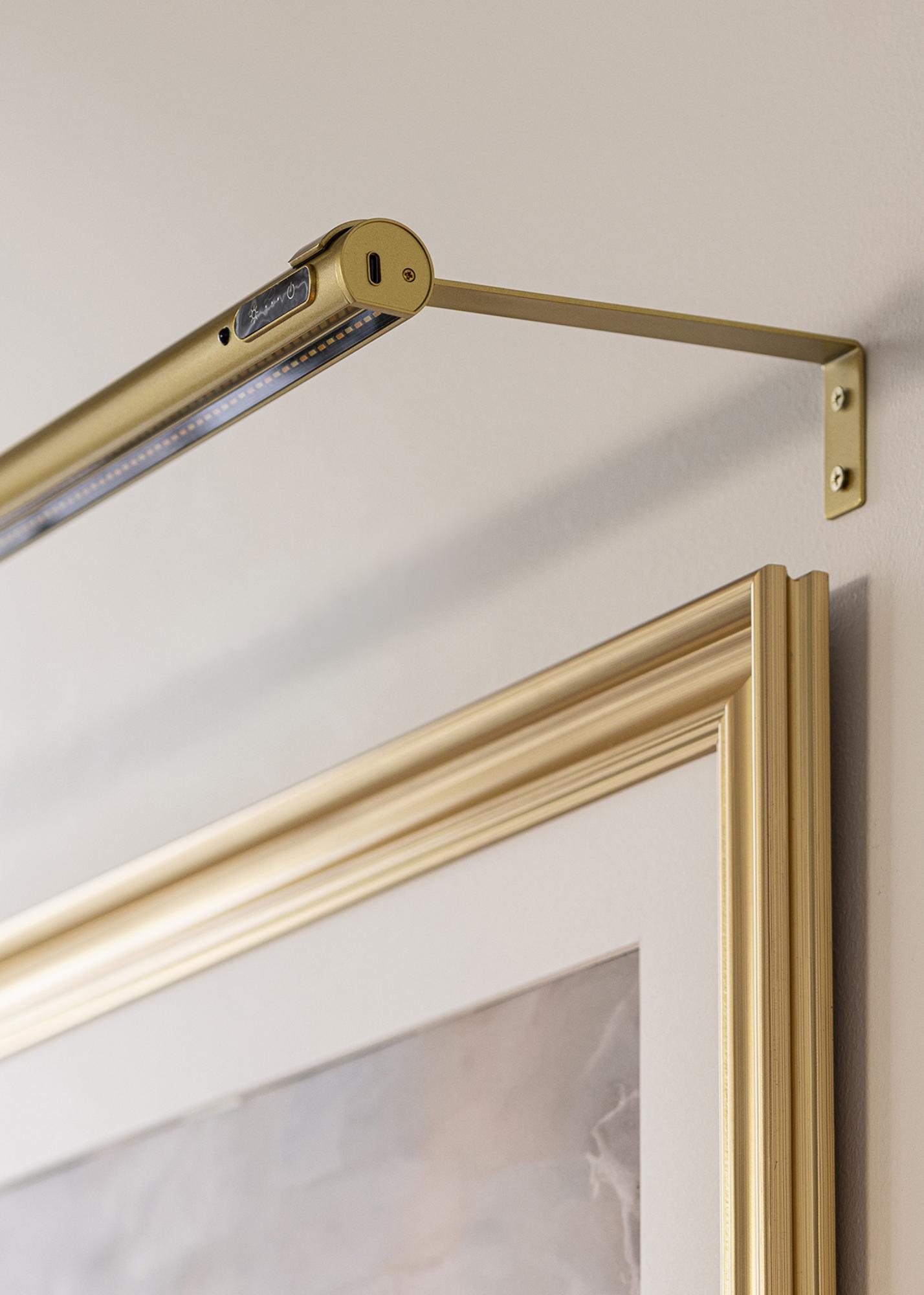 Heben Sie Ihre Kunstwerke mit KAILA Brilliance hervor – einer stilvollen und batteriebetriebenen Bilderbeleuchtung, die Ihrem Bild perfekte Beleuchtung ohne Kabel bietet! Dank ihres kabellosen Designs kann sie überall einfach platziert werden, ohne dass Sie auf Steckdosen achten müssen. Mit ihrem eleganten Goldfinish und dem verstellbaren Arm verbreitet sie ein sanftes und gleichmäßiges Licht über Ihr Bild, wodurch Details und Farben auf wunderschöne Weise hervorgehoben werden. Einfache Montage und benutzerfreundliche Bedienung machen diese Bilderbeleuchtung zu einer ausgezeichneten Wahl für sowohl Zuhause als auch Galerie.