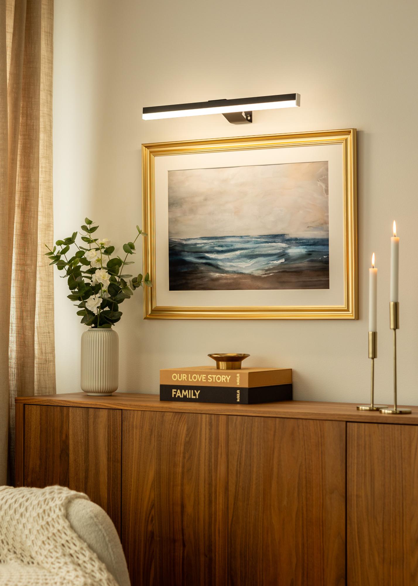 Diese batteriebetriebene Bilderleuchte bietet eine diskrete und stilvolle Lösung, um Ihre Kunstwerke zu beleuchten, ohne sich um Kabel kümmern zu müssen. Mit ihrem kabellosen Design können Sie die Lampe problemlos überall in Ihrem Zuhause montieren, was sie zu einer flexiblen Option macht, um Ihre Gemälde oder Fotografien hervorzuheben. Die Tiefe der Lampe beträgt 15 cm, was einen guten Abstand zur Wand schafft, um eine gleichmäßige Beleuchtung von Bildern mit einer maximalen Breite von bis zu 80 cm zu gewährleisten.