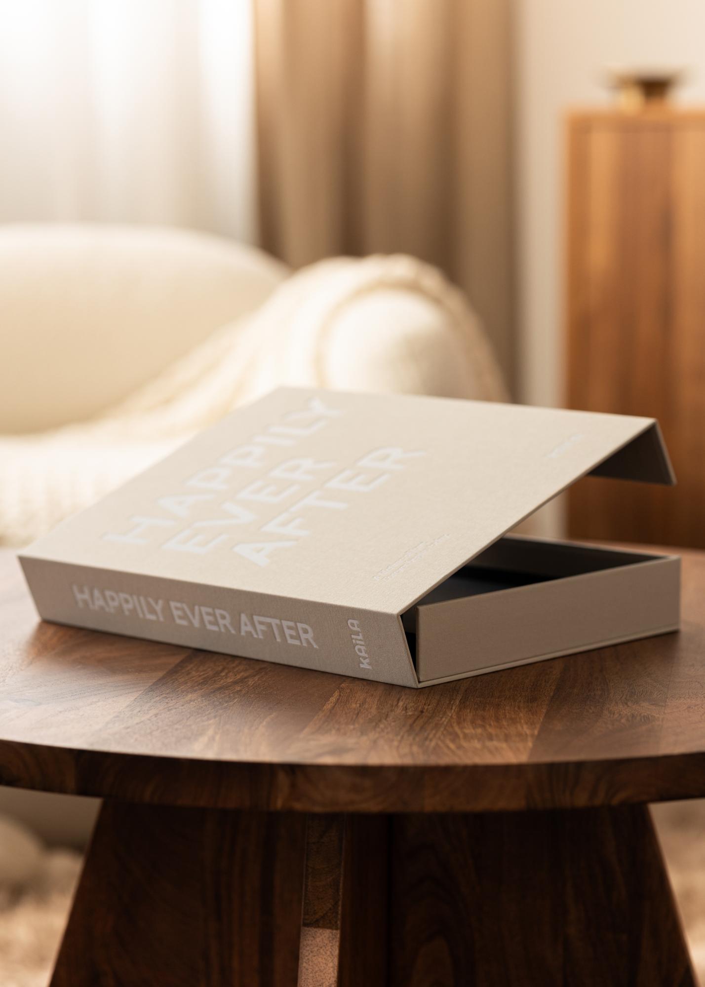 KAILA Happily Ever After ist ein exklusives und elegantes Hochzeitsalbum in einem stilvollen cremefarbenen Design. Es ist als Coffee-Table-Album gestaltet, was es zu einem schönen Einrichtungsgegenstand macht, während es gleichzeitig deine unvergesslichsten Momente bewahrt. Das Album enthält 60 schwarze, säurefreie Seiten, auf denen du deine Hochzeitsbilder stilvoll anbringen kannst. Perfekt, um eine zeitlose Sammlung von Erinnerungen an den großen Tag zu schaffen.