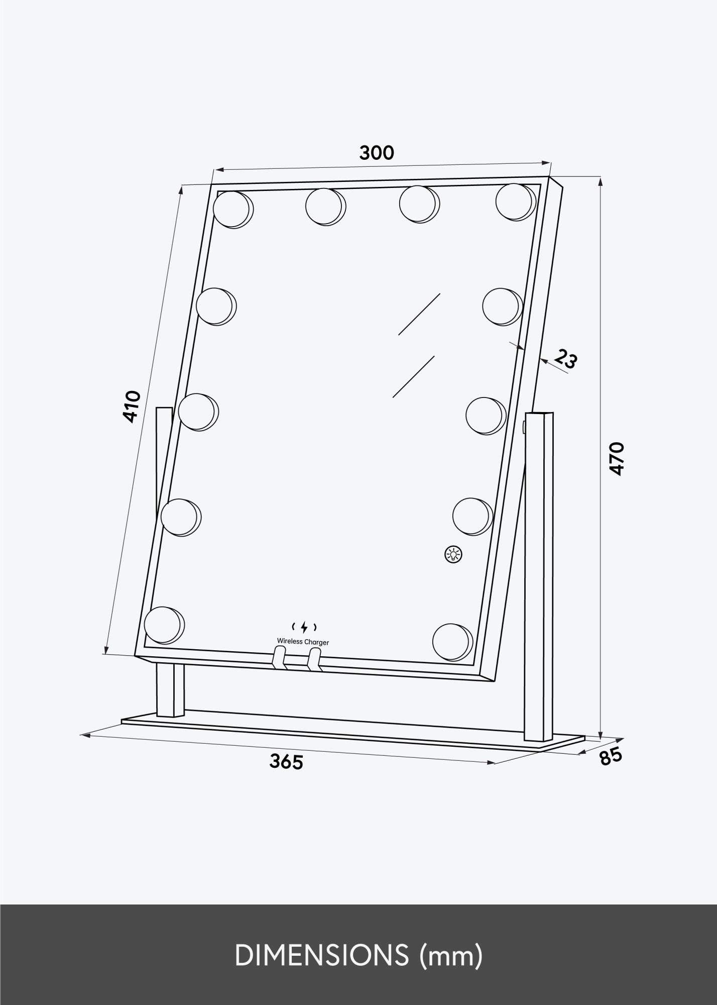 Fändest du es nicht auch super praktisch, wenn du dein Handy bei dir haben und es aufladen könntest, während du dich schminkst oder dich vor dem Spiegel hübsch machst? Das geht tatsächlich! Dieser Kosmetikspiegel bietet nämlich für jedes Handy oder Smartphone, das kabelloses Aufladen unterstützt, drahtloses Aufladen. Stelle einfach dein Handy an dem dafür vorgesehenen Platz am Spiegel auf und lade es auf mit 5V 2A (10 W). Die Ladefunktion ist immer aktiv, wenn die Beleuchtung des Spiegels eingeschaltet ist.