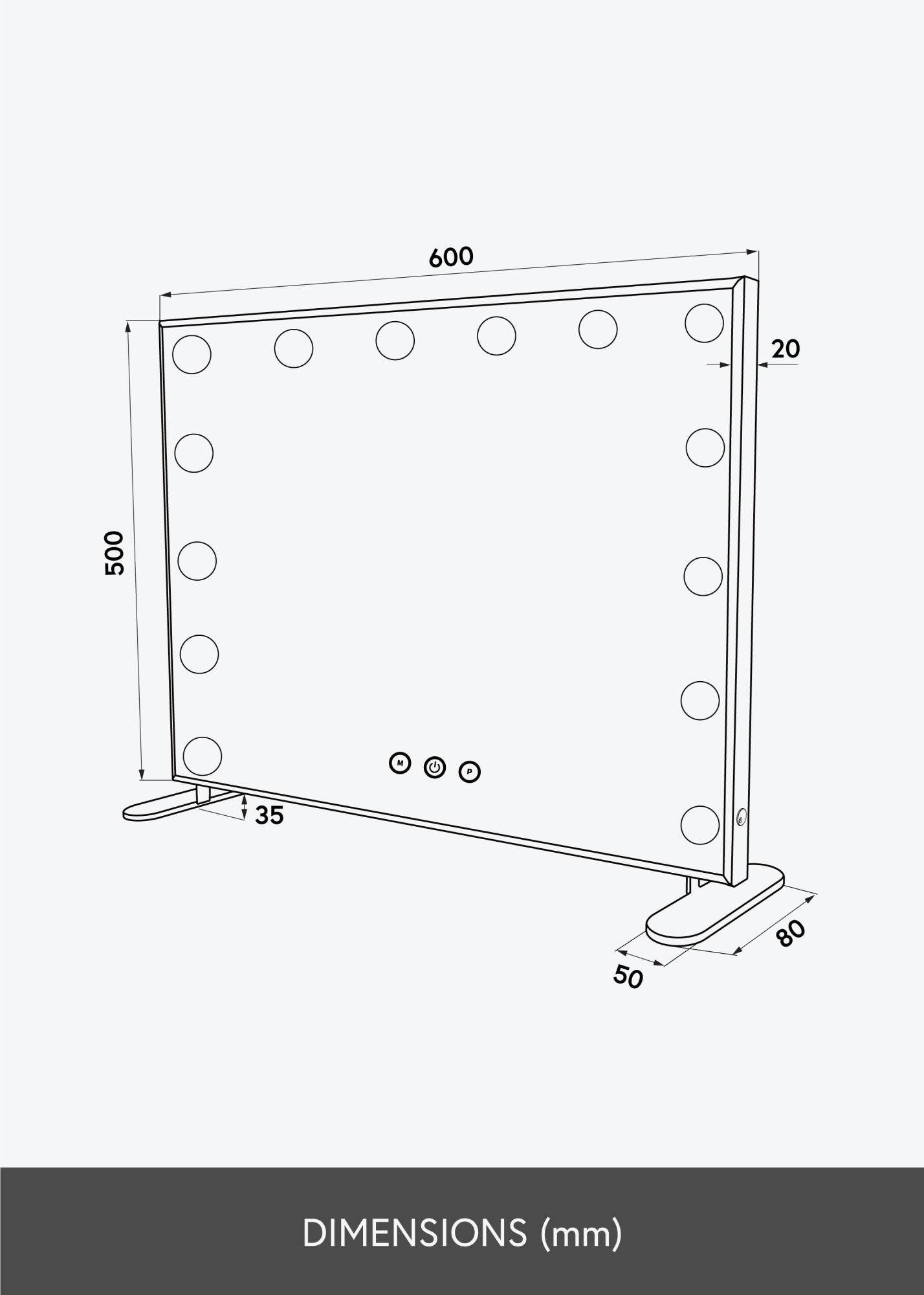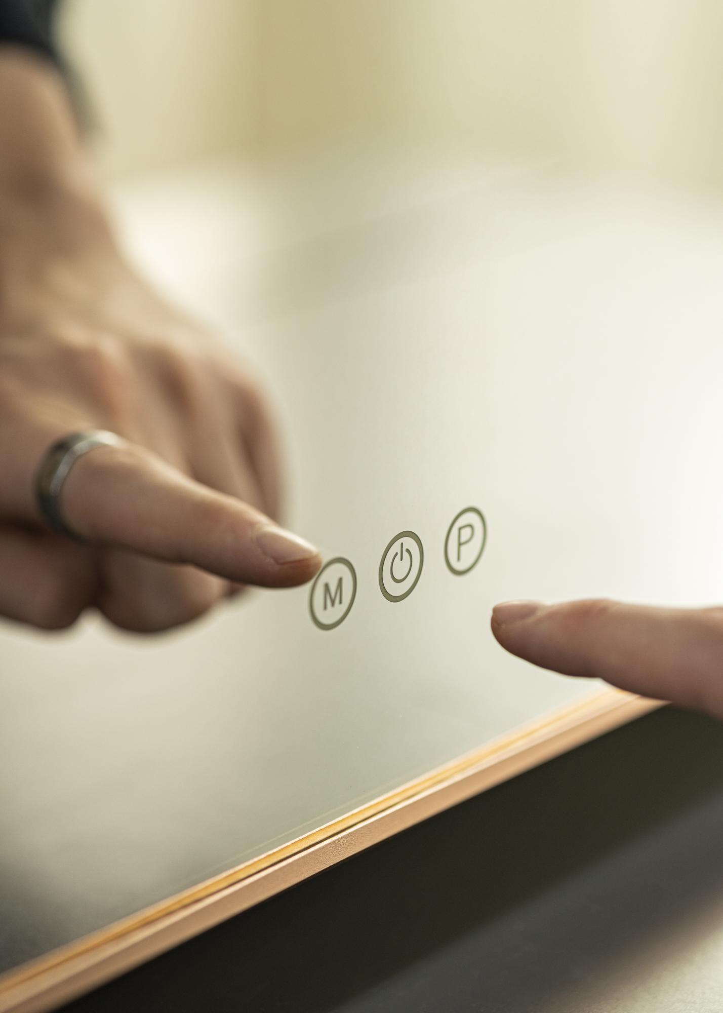 Die LED-Beleuchtung des Spiegels ist dimmbar och kann nach Bedarf mit Hilfe der Touch-Tasten, die sich im unteren Bereich des Spiegels befinden, eingestellt werden. Mit der ”M”-Taste kann die Lichtfarbe bzw. die Farbtemperatur gewählt werden und mit der ”P”-Taste kann die Lichtstärke eingestellt werden. Eine weitere Taste dient dem Ein- und Ausschalten der Beleuchtung. Durch die flexible LED-Beleuchtung passt dieser Lichtspiegel wunderbar in sowohl Wohnzimmer, wenn ein gedimmtes, weicheres Licht, z. B als stimmungsvolle Hintergrundbeleuchtung gefragt ist, als auch natürlich in die Schminkecke, wo ein helles Licht beim Schminken und Auftragen von Make-Up nur von Vorteil ist.