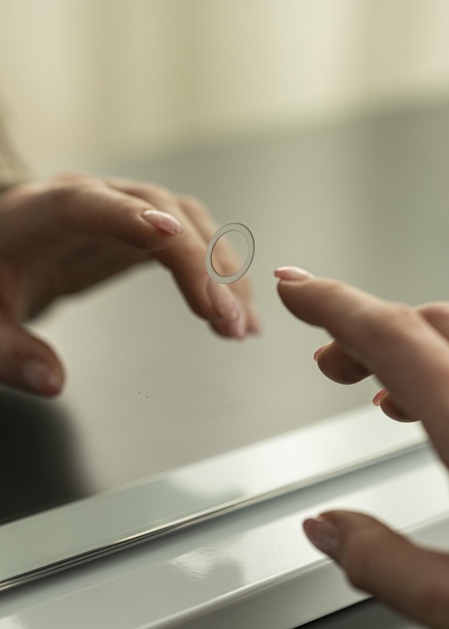 Die Beleuchtung wird einfach durch Betätigen der Touch-Taste auf der Spiegelfläche eingeschaltet. Wird die Taste für einige Sekunden lang gedrückt gehalten, kann gedimmt werden. Damit kann die gewünschte Lichtstärke ganz einfach eingestellt werden. Die Beleuchtung des LED-Spiegels kann so z.B. als stimmungsvolles Hintergrundlicht fungieren oder dich mit einem stärkeren Licht optimal beim Schminken unterstützen.