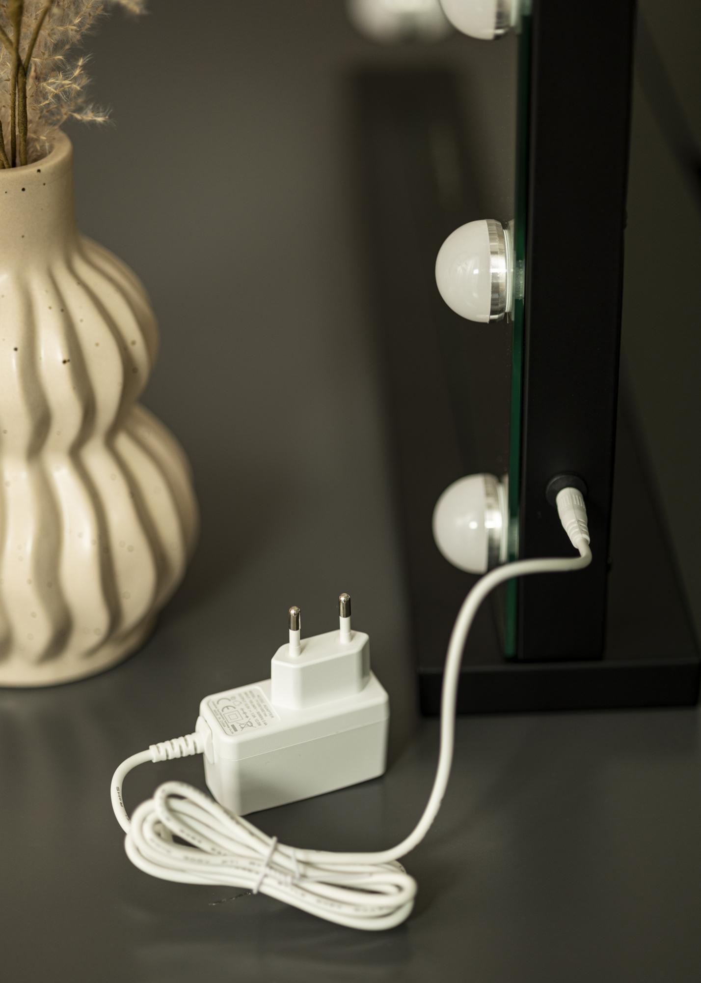 Mit einem schicken LED-Spiegel lassen sich Wohnzimmer, Schlafzimmer oder Flur unkompliziert aufhübschen und um einen erfrischenden Blickfang bereichern. Fast jedem Interieur kann mit dem ein oder anderen clever platzierten Wohnaccessoire auf einfache und schnelle Art der letzte Schliff verliehen werden. Wie beispielsweise mit diesen Lichtspiegel, der ohne Rahmen auskommt. Stattdessen wird die Spiegelfläche von 15 LEDs dekorativ eingerahmt. Die Beleuchtung des Spiegels ist einstellbar. Sowohl Lichtstärke als auch Farbtemperatur können eingestellt werden. Die Einstellungen werden einfach mit Hilfe der Touch-Tasten im unteren Bereich des Spiegels vorgenommen. Mit der "P"-Taste wird die Lichtstärke geändert und mit der "M"-Taste wird die gewünschte Farbtemperatur ausgewählt. Auch für das Ein- und Ausschalten der Beleuchtung gibt es eine Touch-Taste. Mit einem Stecker wird der LED-Spiegel an den Strom angeschlossen.