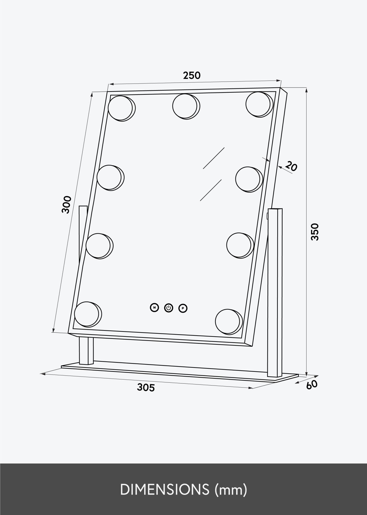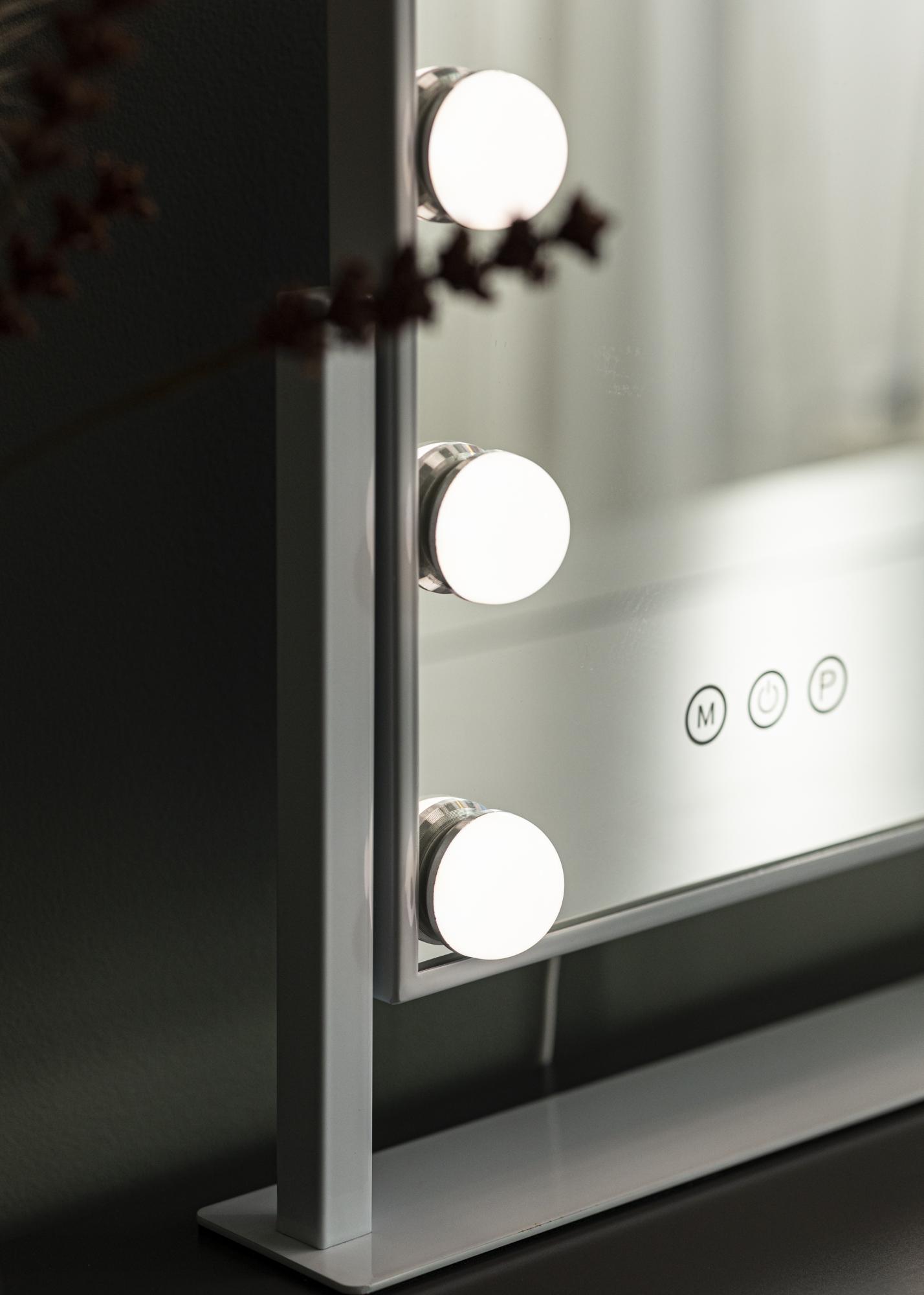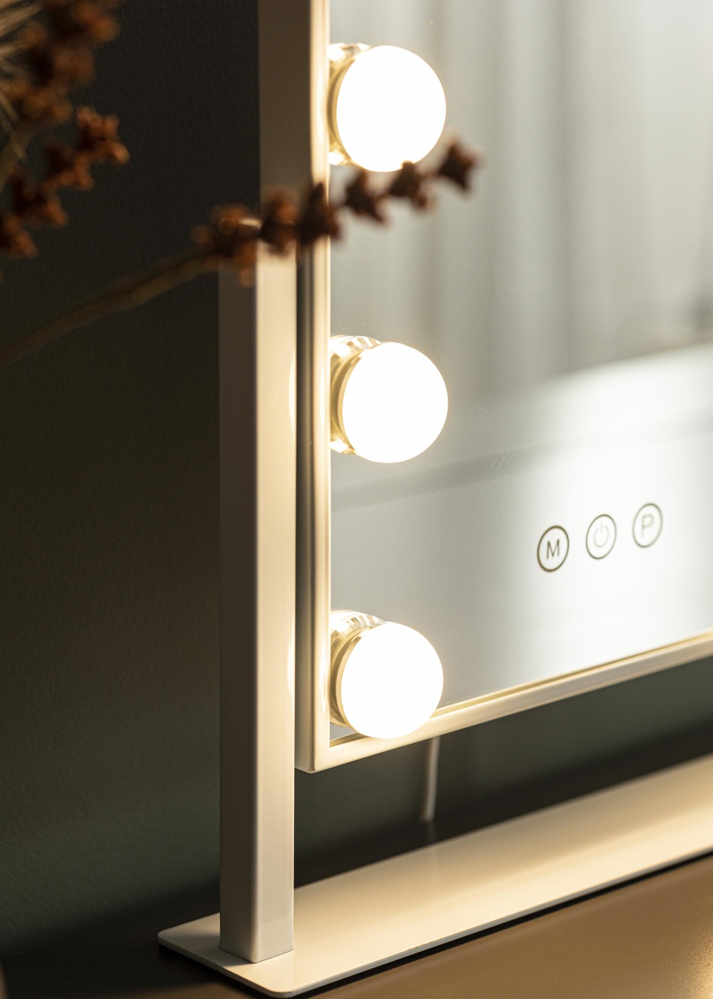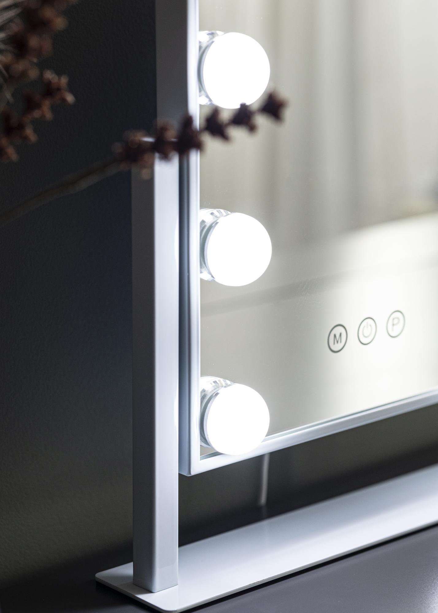 Dieser Kosmetikspiegel ist die optimale Wahl für alle, die Wert auf eine gute Beleuchtung direkt am Spiegel legen. Dieser Hollywood Spiegel mit Beleuchtung im stilechten, besonderen Design verfügt über etwas größere LED-Lampen, die die Spiegelfläche hübsch einrahmen und dafür sorgen, dass der Spiegel auch als schöne Hintergrundbeleuchtung taugt, die sowohl im Wohnzimmer als auch im Flur oder in sonstigen Räumen zum Einsatz kommen kann. Die Spiegelfläche kann im Neigungswinkel verstellt werden, für mehr Flexibilität und besten Blick.