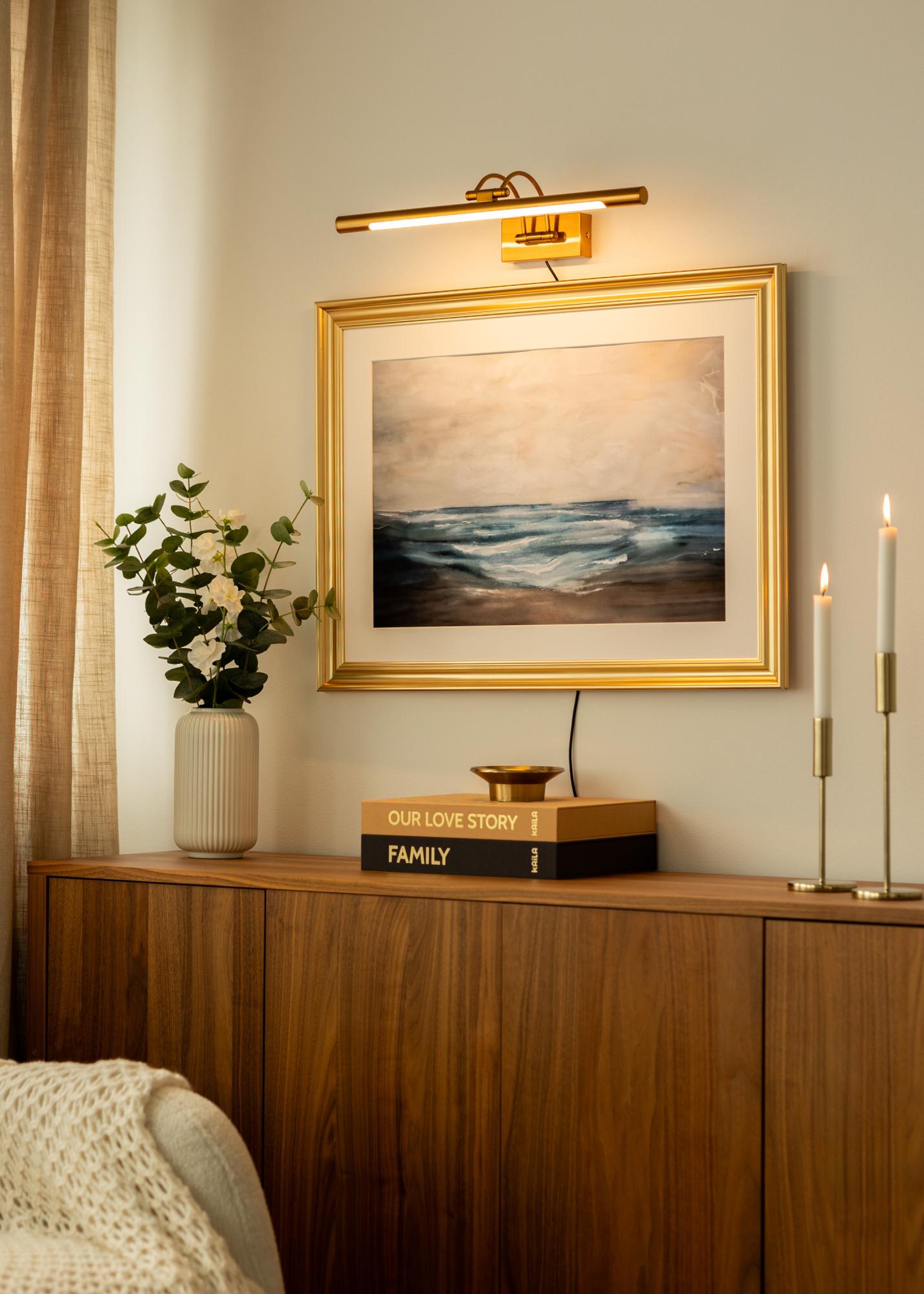 Diese elegante Bilderbeleuchtung in Messing ist entworfen, um Ihre Kunstwerke stilvoll und funktional hervorzuheben. Mit einer Tiefe von 19 cm und einer Länge von 50 cm eignet sie sich hervorragend für Gemälde mit einer maximalen Breite von bis zu 90 cm, was sie zu einer vielseitigen Wahl für verschiedene Arten von Kunstwerken macht. Die eingebaute LED-Lichtquelle gibt ein angenehmes Licht mit einer Farbtemperatur von 3000K ab, was eine warme und einladende Atmosphäre schafft, ohne zu überwältigen.