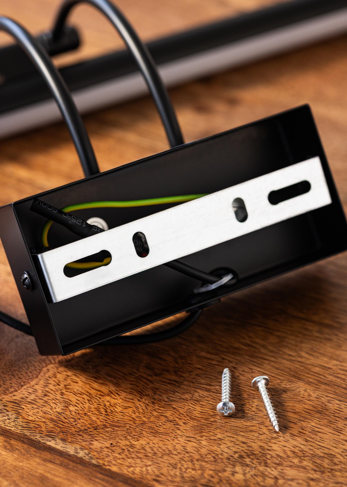 Eine stilvolle Bilderbeleuchtung in Schwarz, die Ihre Kunstwerke mit Präzision und Einfachheit hervorhebt. Mit ihren Maßen von 19 cm Tiefe und 50 cm Länge ist sie darauf ausgelegt, Bilder mit einer maximalen Breite von bis zu 90 cm zu beleuchten. Die Beleuchtung hat eine Farbtemperatur von 3000K, was ein angenehmes und einladendes Licht schafft, ohne überwältigend zu sein.