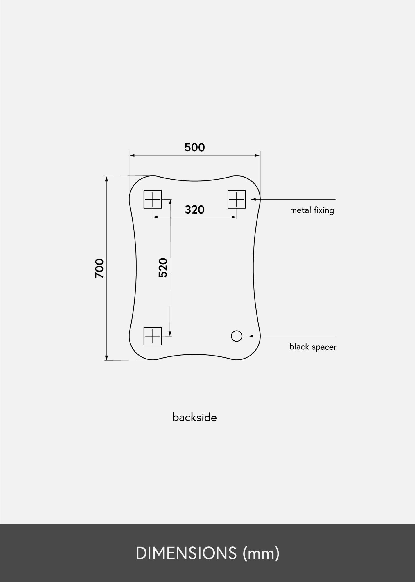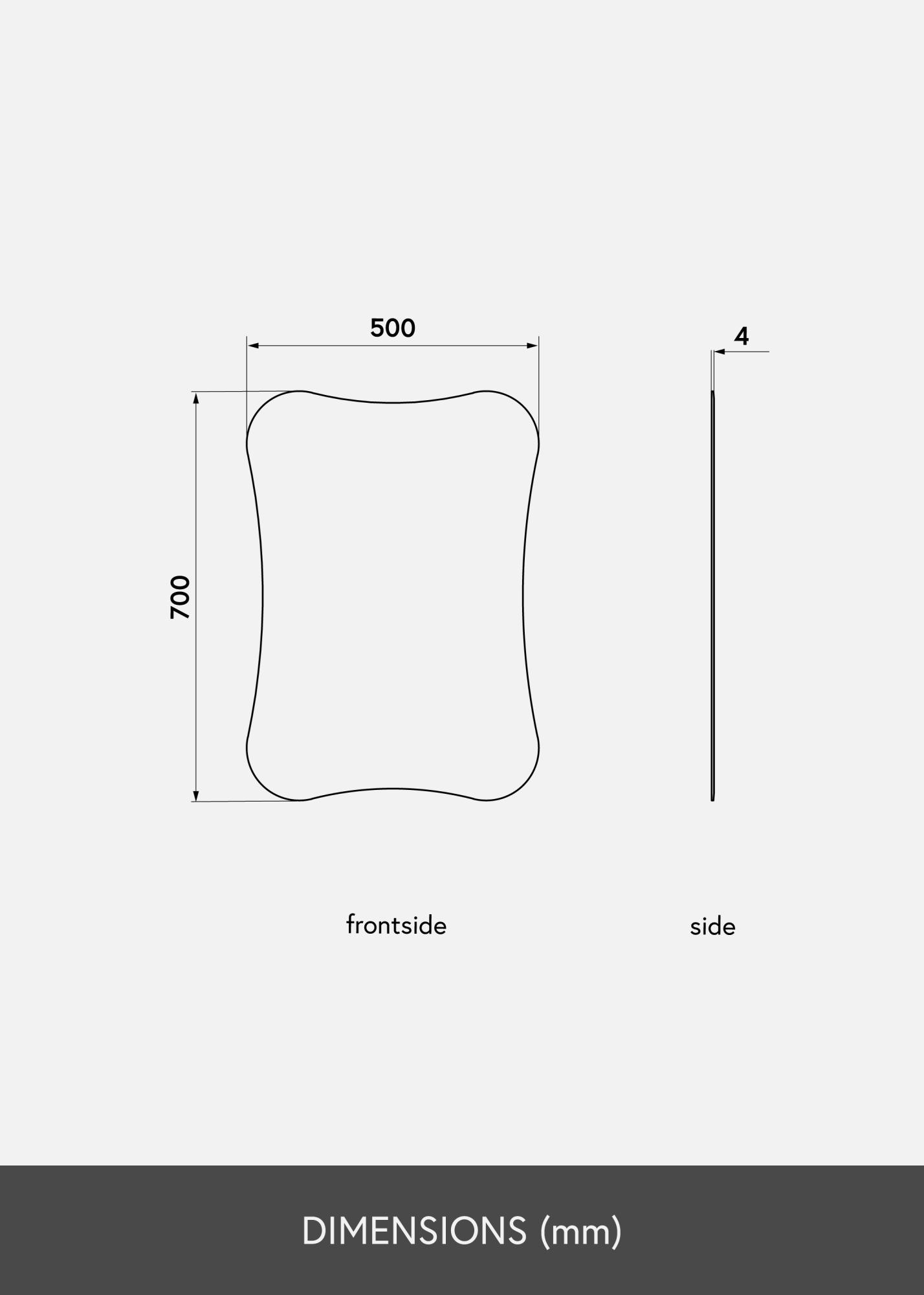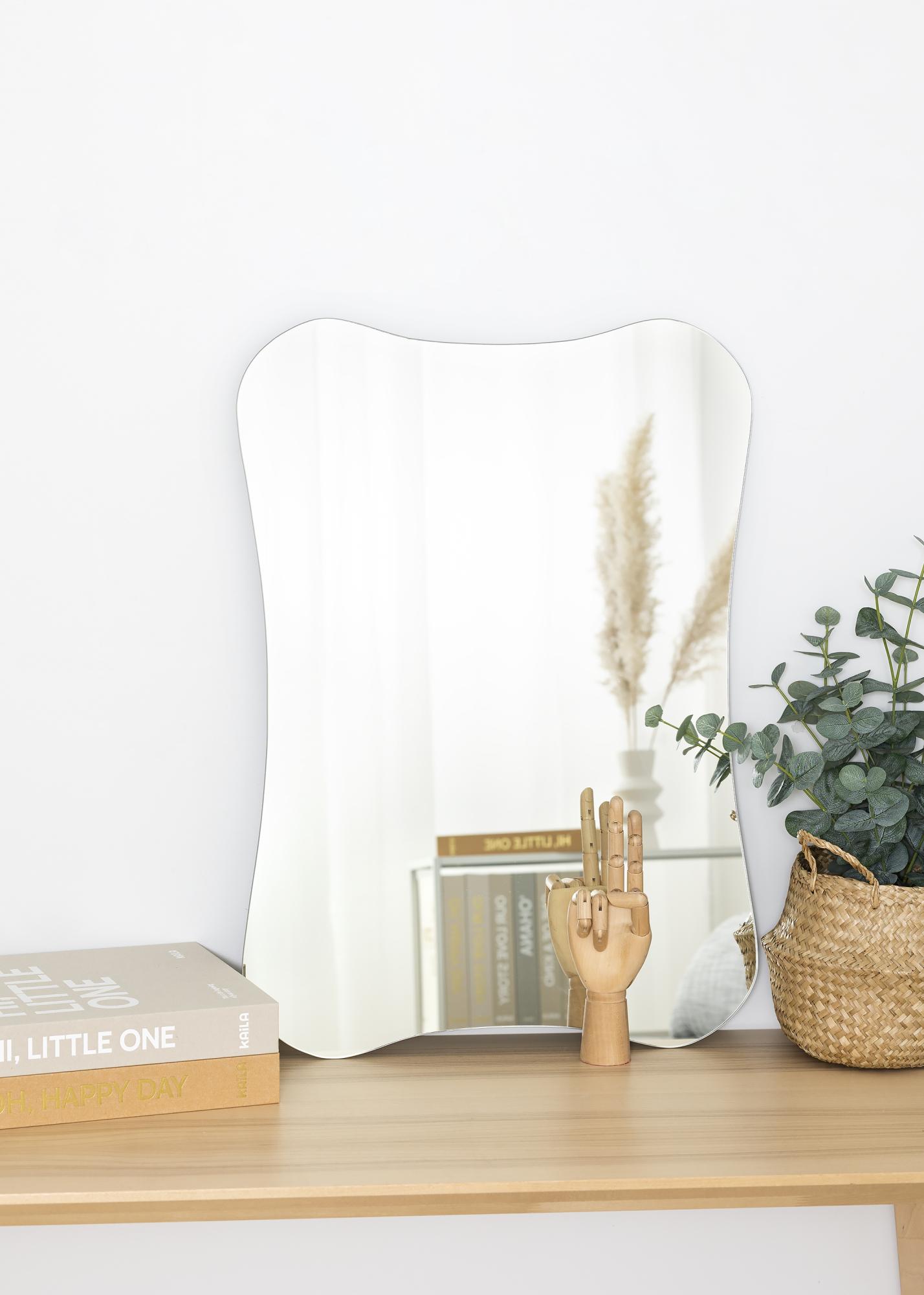 Rechteckiger Spiegel von KAILA mit ausgestellten, abgerundeten Ecken, die eine schöne, nach innen gebogene Seitenform schaffen. Die klassische Optik des Spiegels passt sowohl in traditionelle als auch in moderne Wohnräume und das farblose Spiegelglas sorgt für zeitlose Eleganz. Der Spiegel verfügt über eine praktische Wandhalterung, die ein müheloses Aufhängen sowohl im Hoch- als auch im Querformat ermöglicht. Dieser Wandspiegel hat die Maße 50×70 cm.
