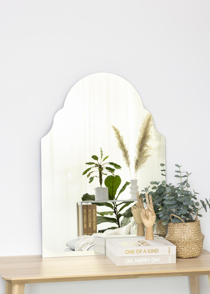 Lass dich mit diesem wunderschönen Spiegel von KAILA von orientalischen Einflüssen inspirieren. Der Spiegel hat ein klassisches Design ohne Rahmen, jedoch mit einer Form, die dem Raum eine persönliche Note verleiht. Er passt perfekt in ein Wohnzimmer wie auch in den Flur oder das Schlafzimmer. Dank der praktischen Wandhalterung kannst du den Spiegel ganz einfach dort anbringen, wo du ihn haben möchtest. Der Wandspiegel hat die Maße 70×100 cm.