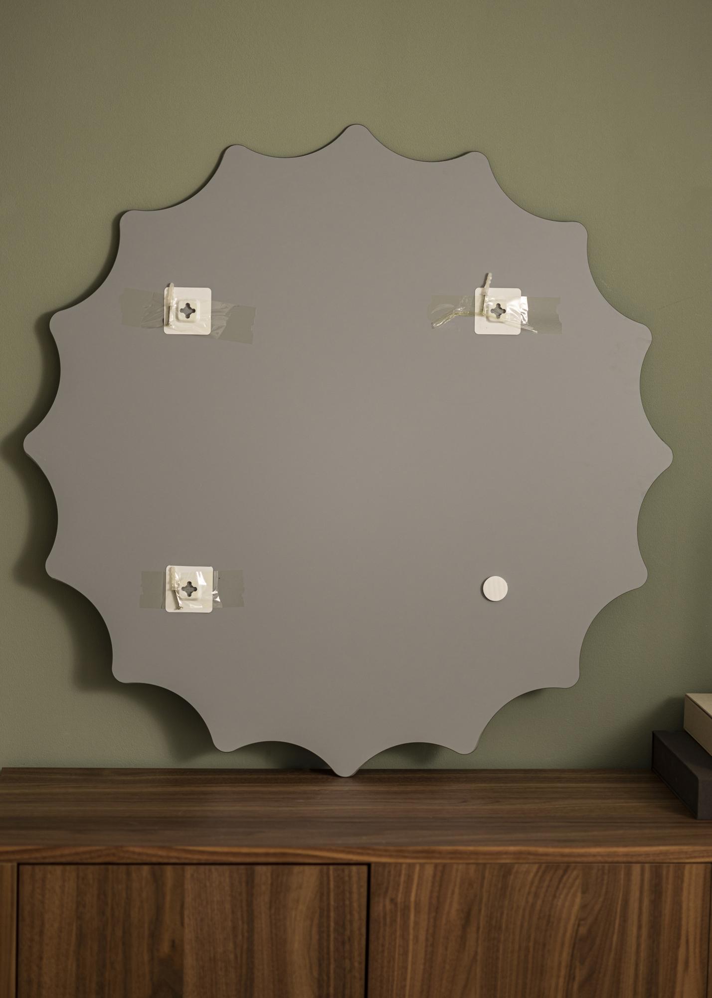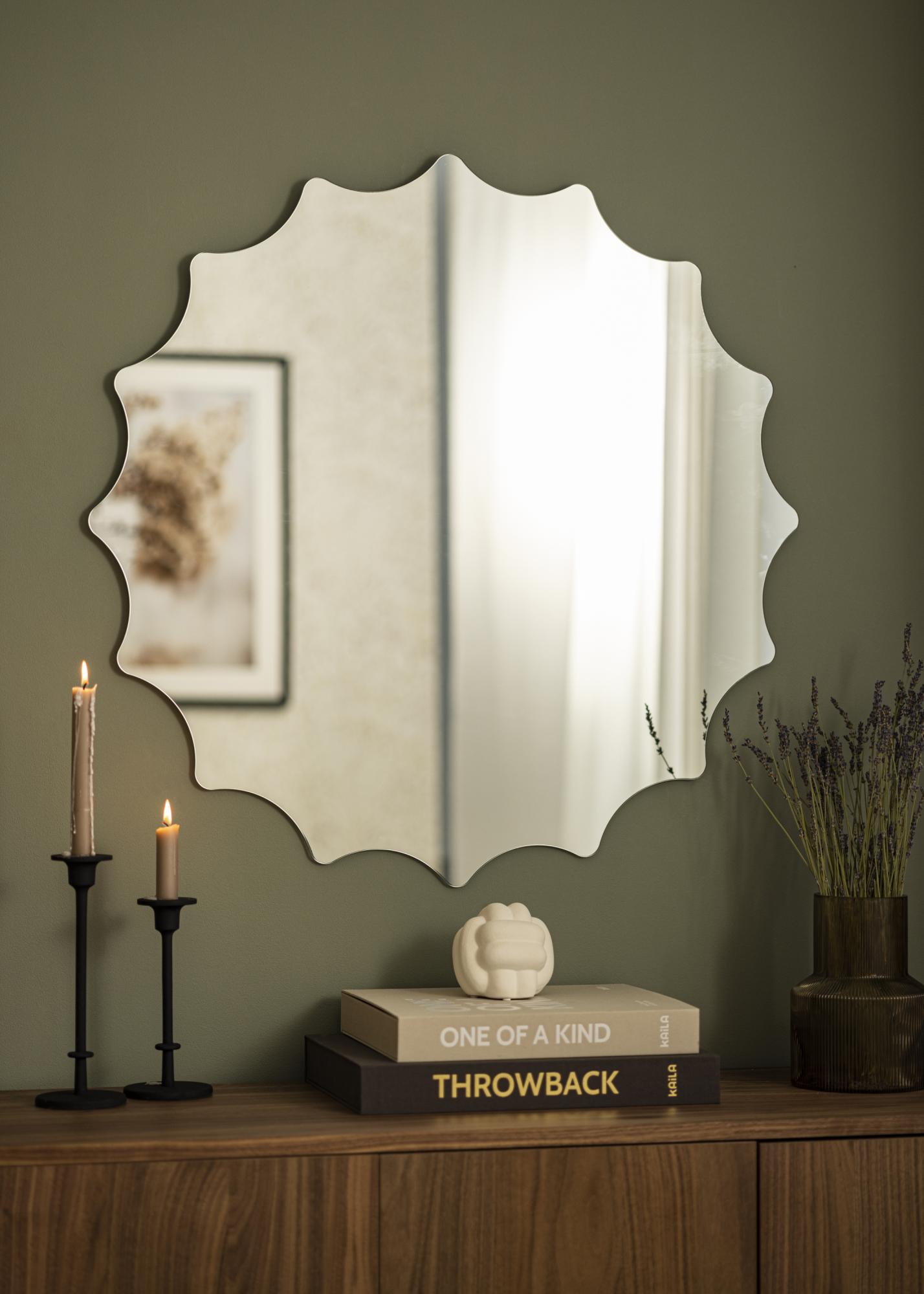 Stylischer Spiegel von KAILA in verspielter Form, der sich perfekt in das kreative Zuhause einfügt. Das sonnenförmige Design vermittelt eine aufregende Optik, während das dünne und farblose Glas die klassische Haptik bewahrt. Dem Wandspiegel fehlt ein Rahmen, was seine Eleganz noch verstärkt. Lass dich von seiner wellenförmigen Form inspirieren und befestige diesen Spiegel mithilfe der praktischen Wandhalterung im Flur, Schlaf- oder Wohnzimmer. Der Spiegel hat einen Durchmesser von 80 cm.