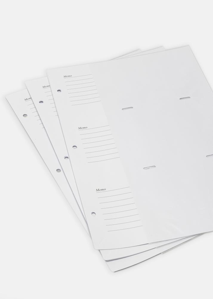 Albumseiten in Weiß, extra Albumblätter für unsere trendige Fotoalbum-Serie KAILA Coffee Table Album XL. Die weißen Albumblätter bieten Platz für 60 Fotos im Format 10x15 cm. Ein Feld für Text, Notizen, Kommentare och Bildbeschreibungen findet sich neben jedem Bild, sodass die Foto-Erinnerungen mit eigenen Texten, Orts- und Zeitangaben o.ä. ergänzt werden können.