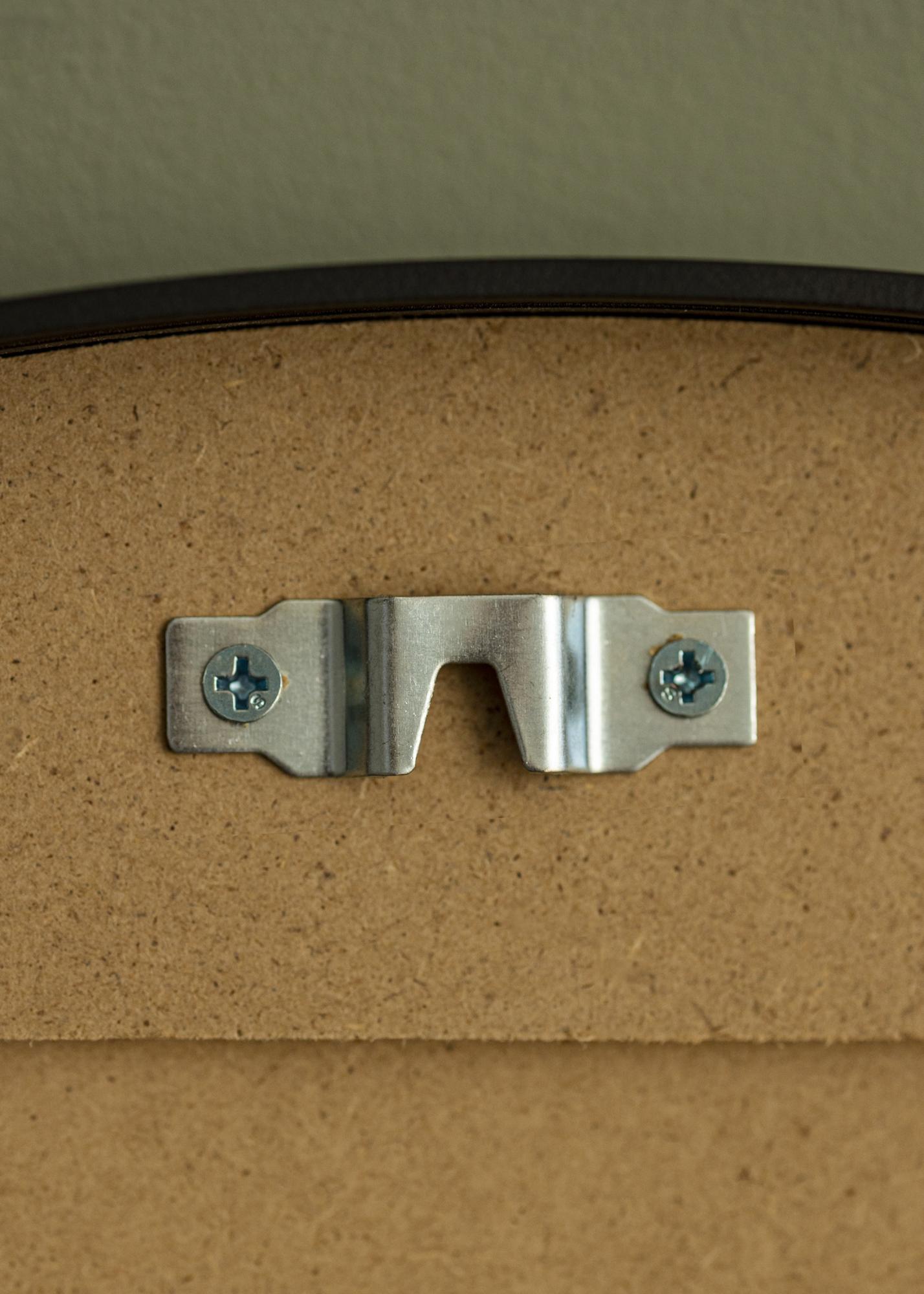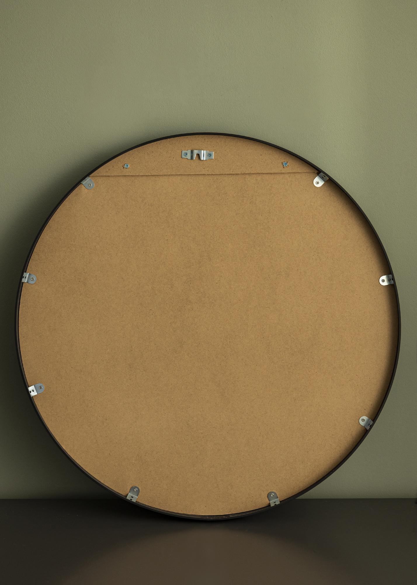 Der Spiegel ist in verschiedenen Größen erhältlich. Diese Variante hat einen Durchmesser von 60 cm und verfügt über zwei vormontierte Wandhalterungen auf der Rückseite, die für eine einfache und stabile Befestigung an der Wand sorgen. Passende Schrauben und Dübel werden mitgeliefert.