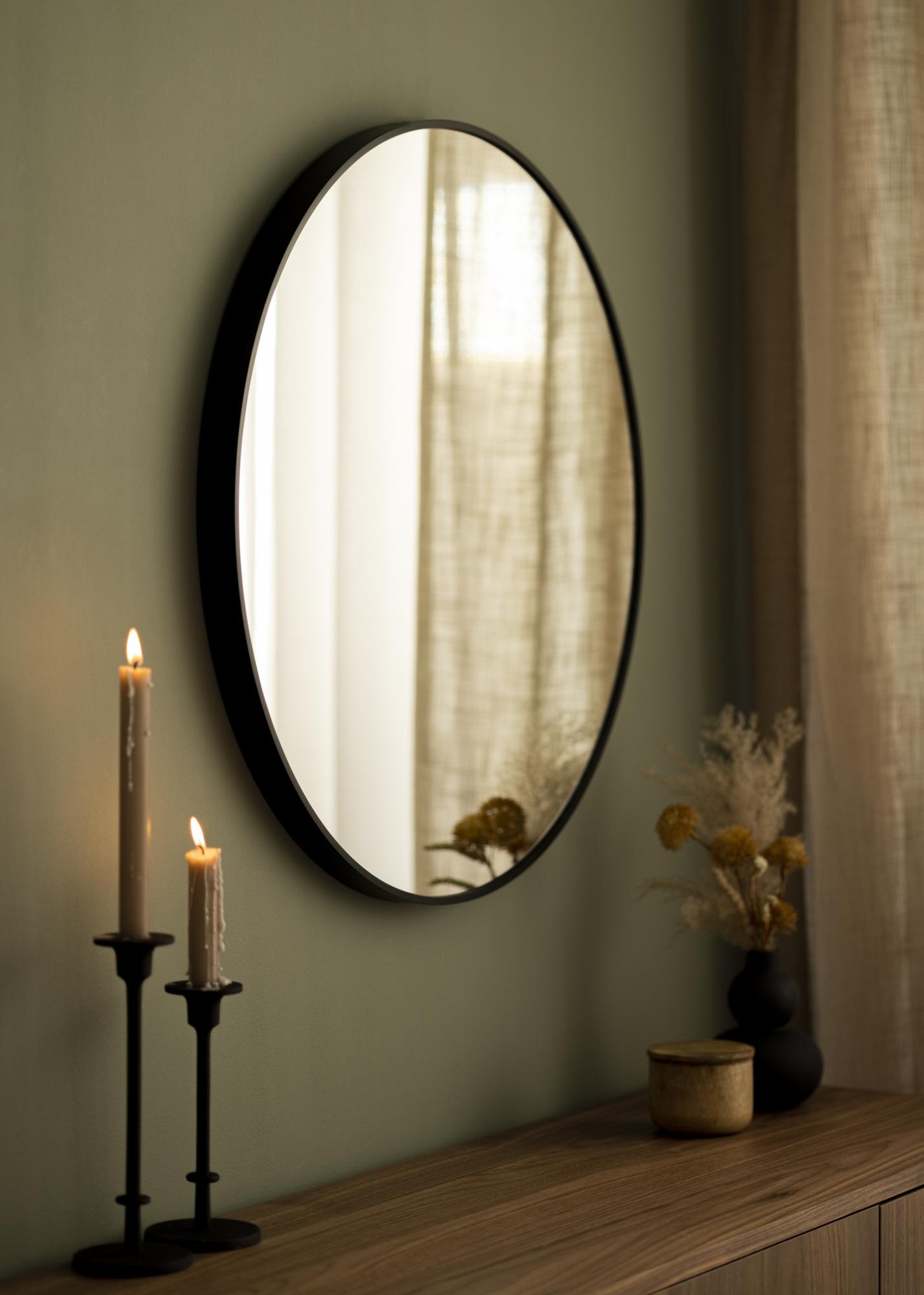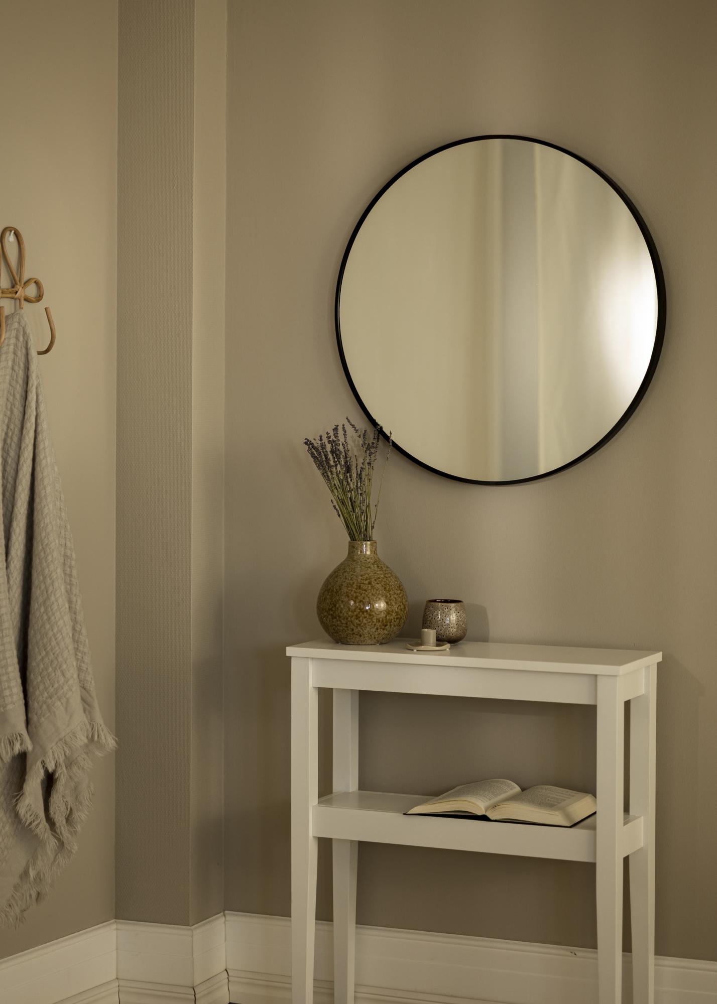 KAILA Round Mirror Edge Black ist ein runder Spiegel mit einem eleganten, dünnen Metallrahmen in mattem Schwarz, der ihm einen angesagten Industrial-Look verleiht. Der Rahmen hat - je nach Größe - eine Tiefe zwischen 30 und 40 mm, sodass das Spiegelglas etwas aus der Wand herausragt und einen coolen 3D-Effekt erzeugt. Durch die Tiefe des Rahmens wirkt der Spiegel robust und behält gleichzeitig sein minimalistisches Erscheinungsbild bei. Ein perfekter runder Spiegel für jeden Raum, in dem du Funktion und stilvolles schwedisches Design kombinieren möchtest!