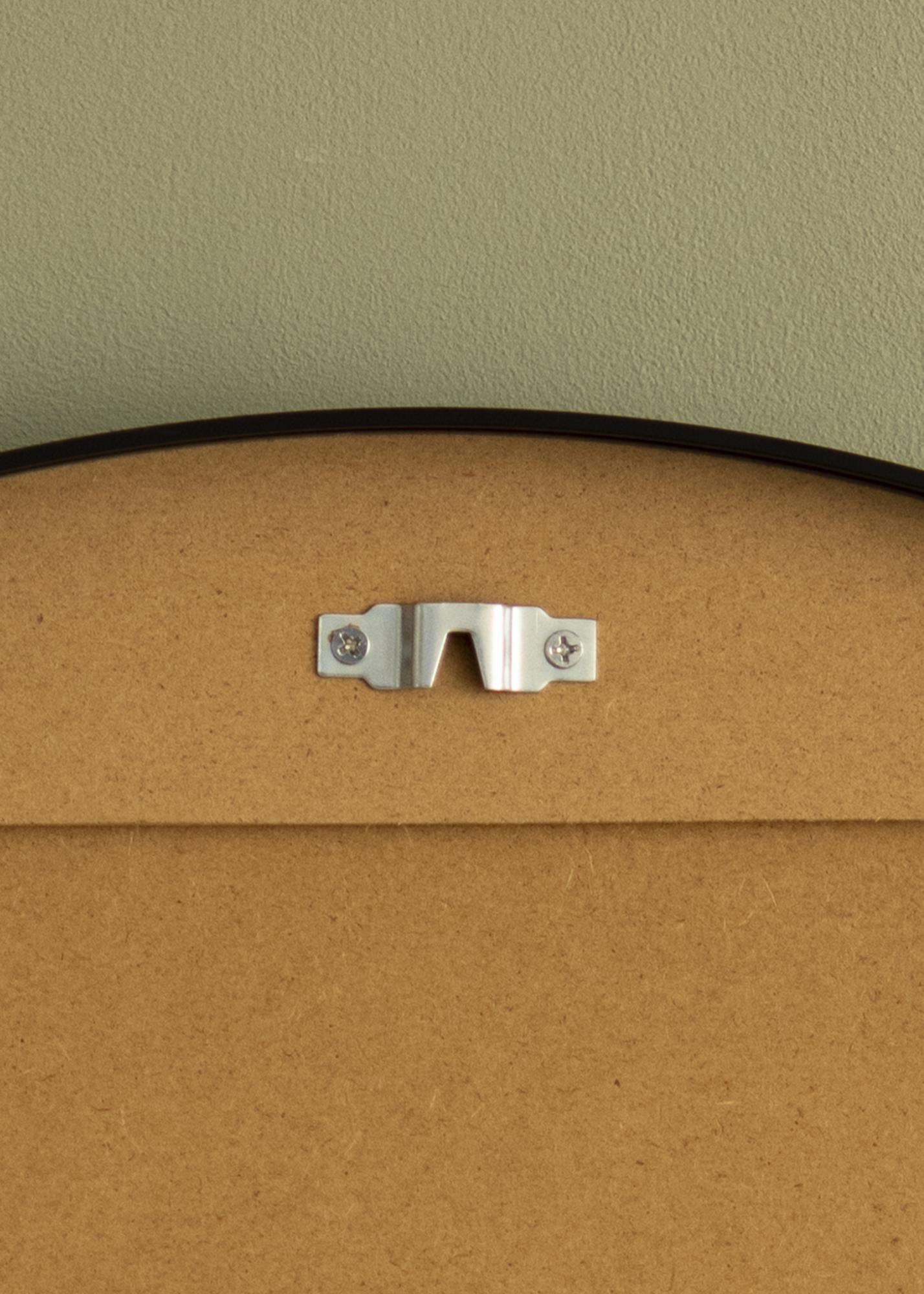 Der Spiegel ist in verschiedenen Größen erhältlich. Diese Variante hat einen Durchmesser von 70 cm und verfügt über zwei vormontierte Wandhalterungen auf der Rückseite, die für eine einfache und stabile Befestigung an der Wand sorgen. Passende Schrauben und Dübel werden mitgeliefert.