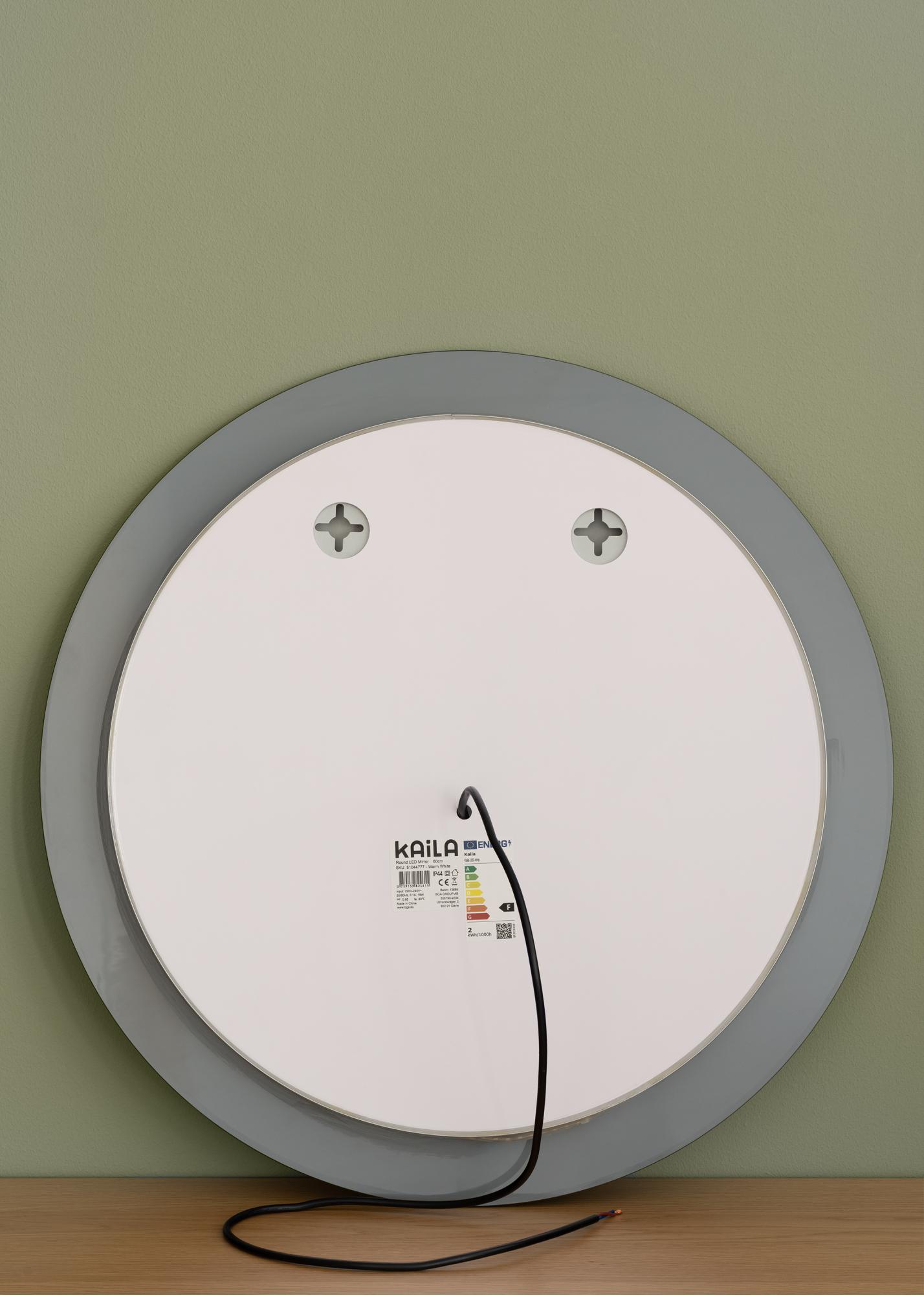 Klassischer Badezimmerspiegel rund in schwedischem Design von KAILA. Dieser Badspiegel ist mit integrierter LED-Beleuchtung ausgestattet, die den Spiegel dekorativ von hinten beleuchtet und mit einem einen angenehm warmweißen Schein, Lichtfarbe 3000 K, nach vorne strahlt. Die LED-Beleuchtung ist dimmbar und kann einfach durch Gedrückthalten des Touch-Sensors für einige Sekunden lang eingestellt werden. Die LED-Technologie ist eine energieschonendere Lichtquelle und steht für ein gleichmäßiges, natürliches Licht.