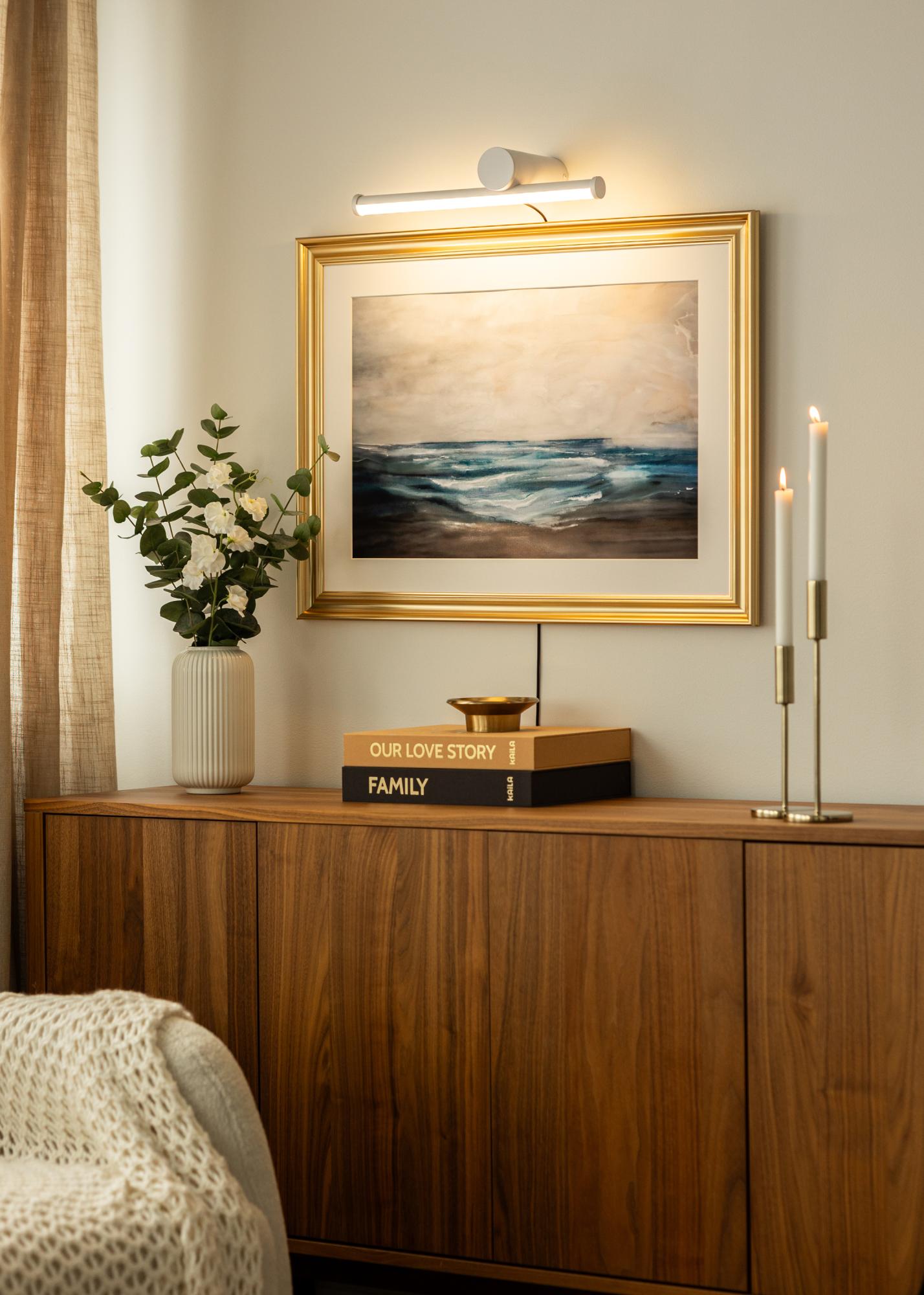Mit ihrem klaren und modernen weißen Design ist diese Bilderleuchte eine dezente und stilvolle Option, um Ihre Gemälde oder Fotografien hervorzuheben. Das Licht verteilt sich sanft und gleichmäßig über Kunstwerke bis zu 80 cm Breite, was sie zu einer vielseitigen Lösung für sowohl Zuhause als auch Büro macht. Mit ihren Maßen von 40 cm in der Länge und 15,3 cm in der Tiefe ist die Beleuchtung so angepasst, dass sie elegant über dem Bild sitzt, ohne zu viel Aufmerksamkeit vom Kunstwerk abzulenken.