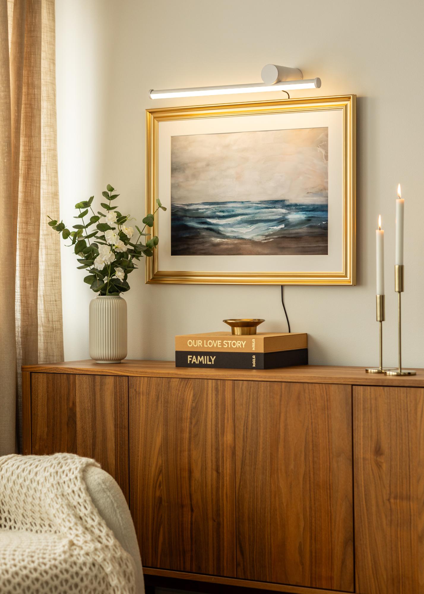 Die Beleuchtung ist mit einer LED-Lichtquelle ausgestattet, die ein warmweißes Licht mit einer Farbtemperatur von 3000K bietet. Dies erzeugt ein weiches und einladendes Licht, das die Details Ihres Kunstwerks auf natürliche Weise hervorhebt. Die Lichtstärke beträgt 780 Lumen, was ausreicht, um Ihr Gemälde zu beleuchten, ohne harte Kontraste zu erzeugen oder den Raum zu überwältigen. Das Licht verteilt sich gleichmäßig über das Kunstwerk, um alle Details bestmöglich zur Geltung zu bringen.