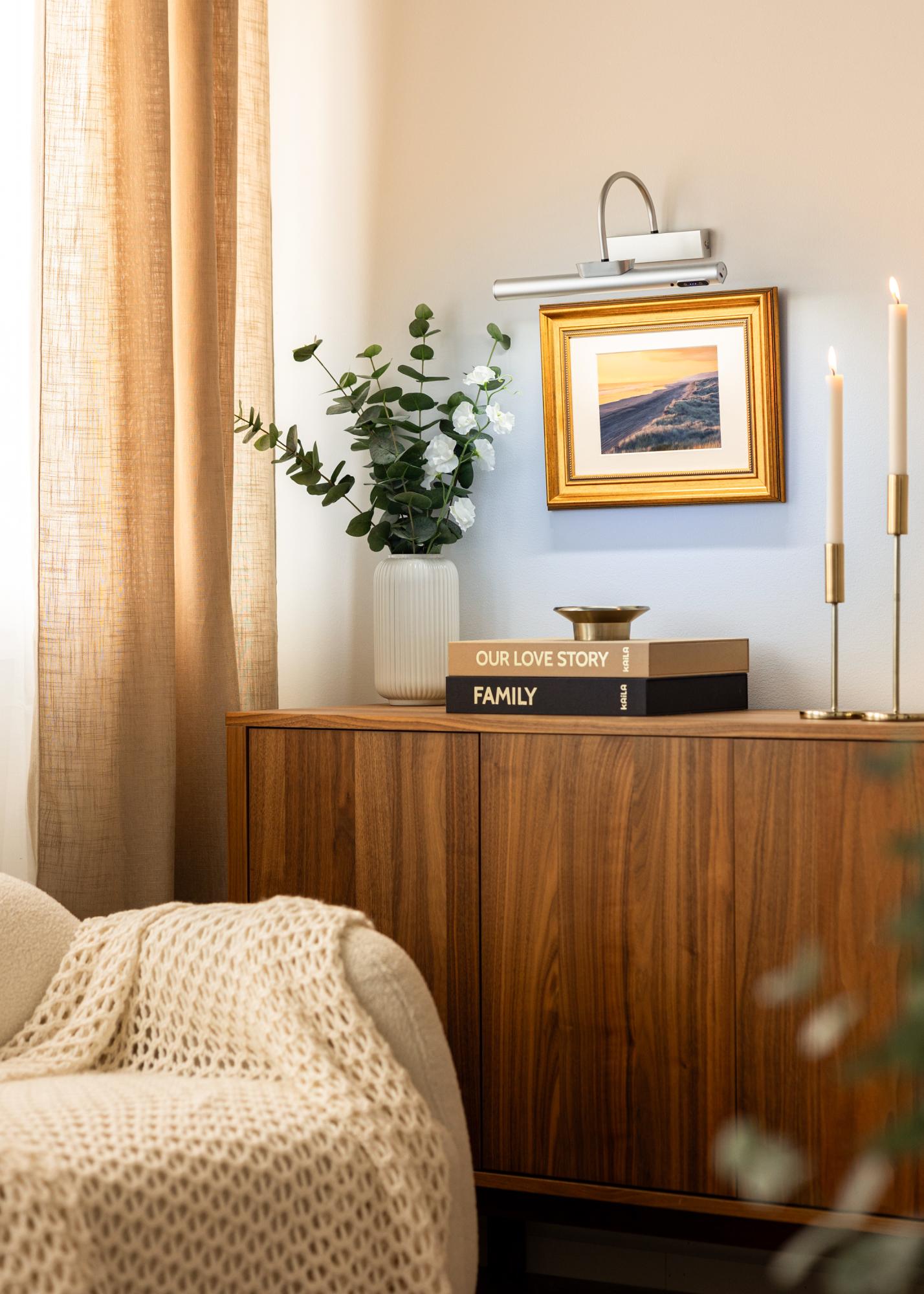 Diese batteriebetriebene Bilderleuchte bietet eine stilvolle und flexible Lösung, um Ihre Kunstwerke ohne das lästige Kabelgewirr zu beleuchten. Mit ihrer eleganten silbernen Farbe fügt sie sich in die meisten Umgebungen ein, egal ob Sie ein Foto, ein Gemälde oder eine andere Art von Wandkunst beleuchten möchten. Ihr größter Vorteil ist, dass Sie sie überall platzieren können, ohne sich Gedanken über die Nähe zu einer Steckdose machen zu müssen.