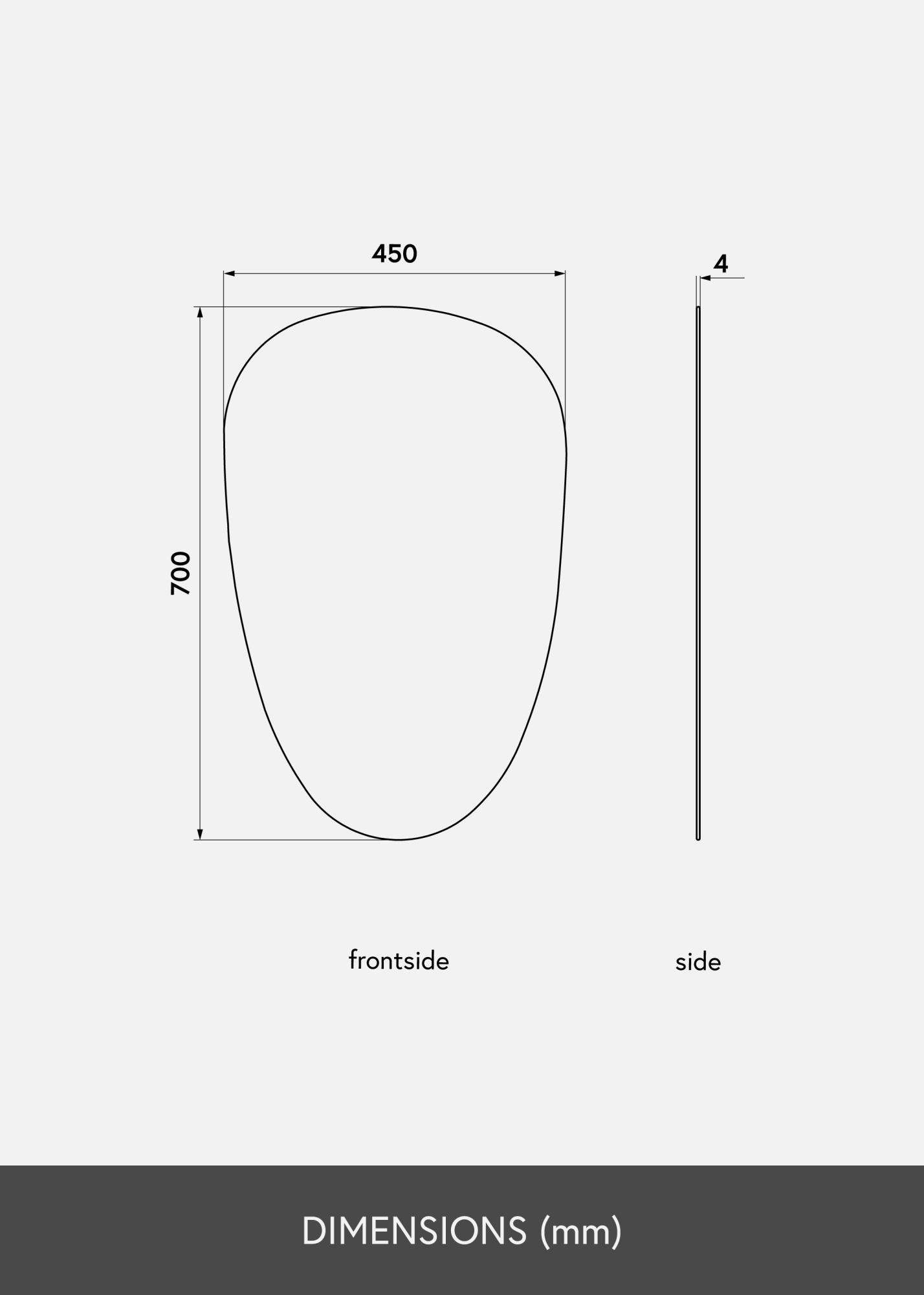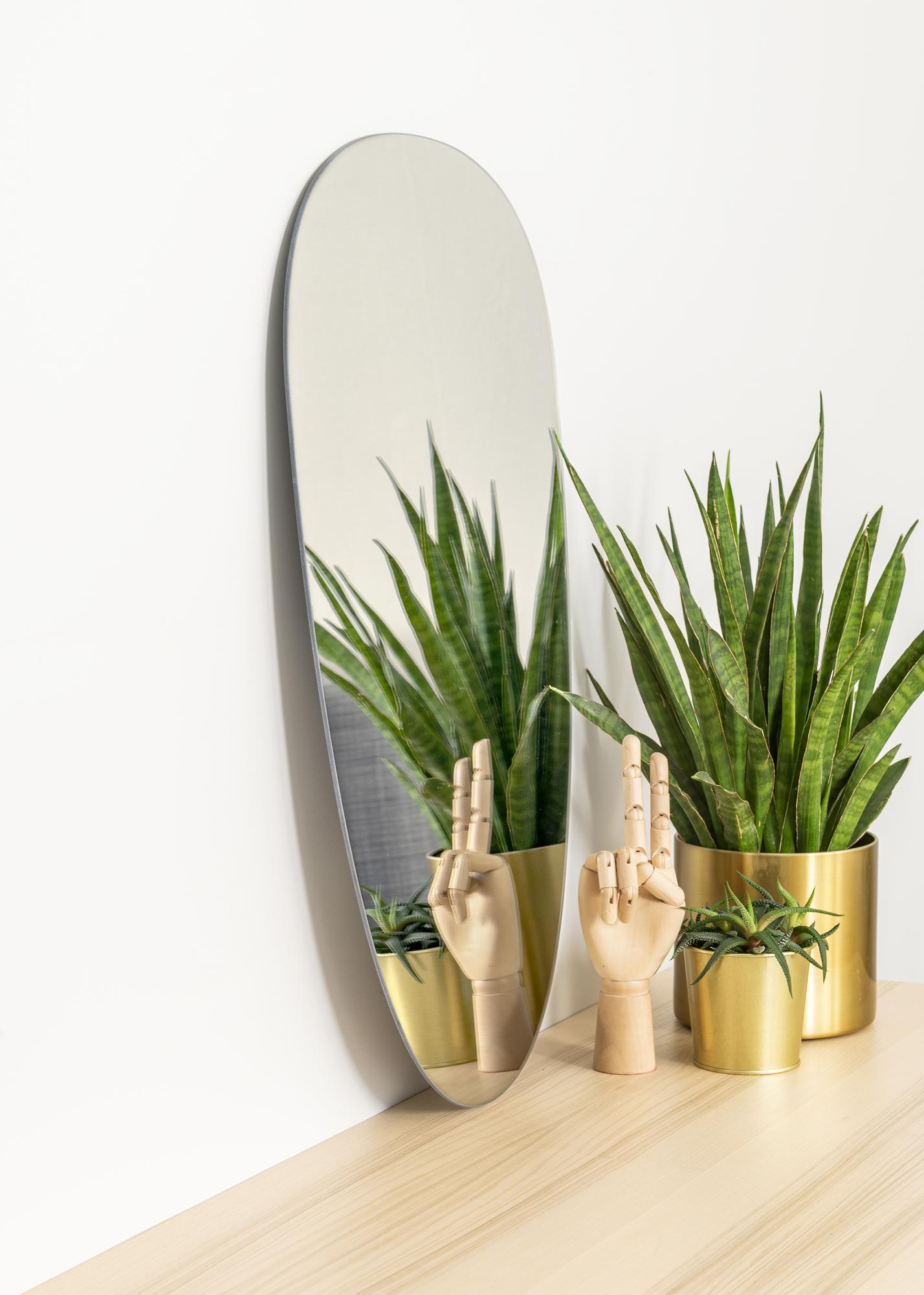 Ein stilvoller und interessanter Spiegel wie dieser verleiht deiner Inneneinrichtung einen modernen Touch! Der Spiegel hat eine sanfte und asymmetrische Form, die man fast als ungleiches Oval beschreiben kann. Der Spiegel ist außerdem besonders dünn und hat keinen Rahmen, was das elegante Aussehen noch mehr hervorhebt.