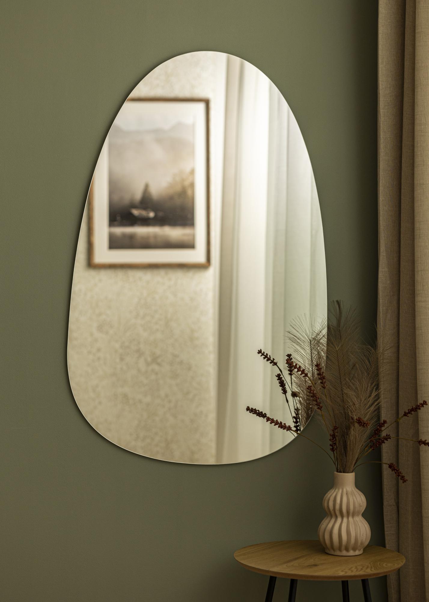 Mit diesem Spiegel bekommst du das Beste aus zwei Welten: ein modernes und aufregendes Einrichtungsdetail, welches außerdem sehr elegant und stilvoll ist. Der Spiegel hat eine weiche und asymmetrische ovale Form, die etwas an ein Ei erinnert. Er ist außerdem besonders dünn und hat keinen Rahmen, was zu seinem modernen und sehr eleganten Stil beiträgt.