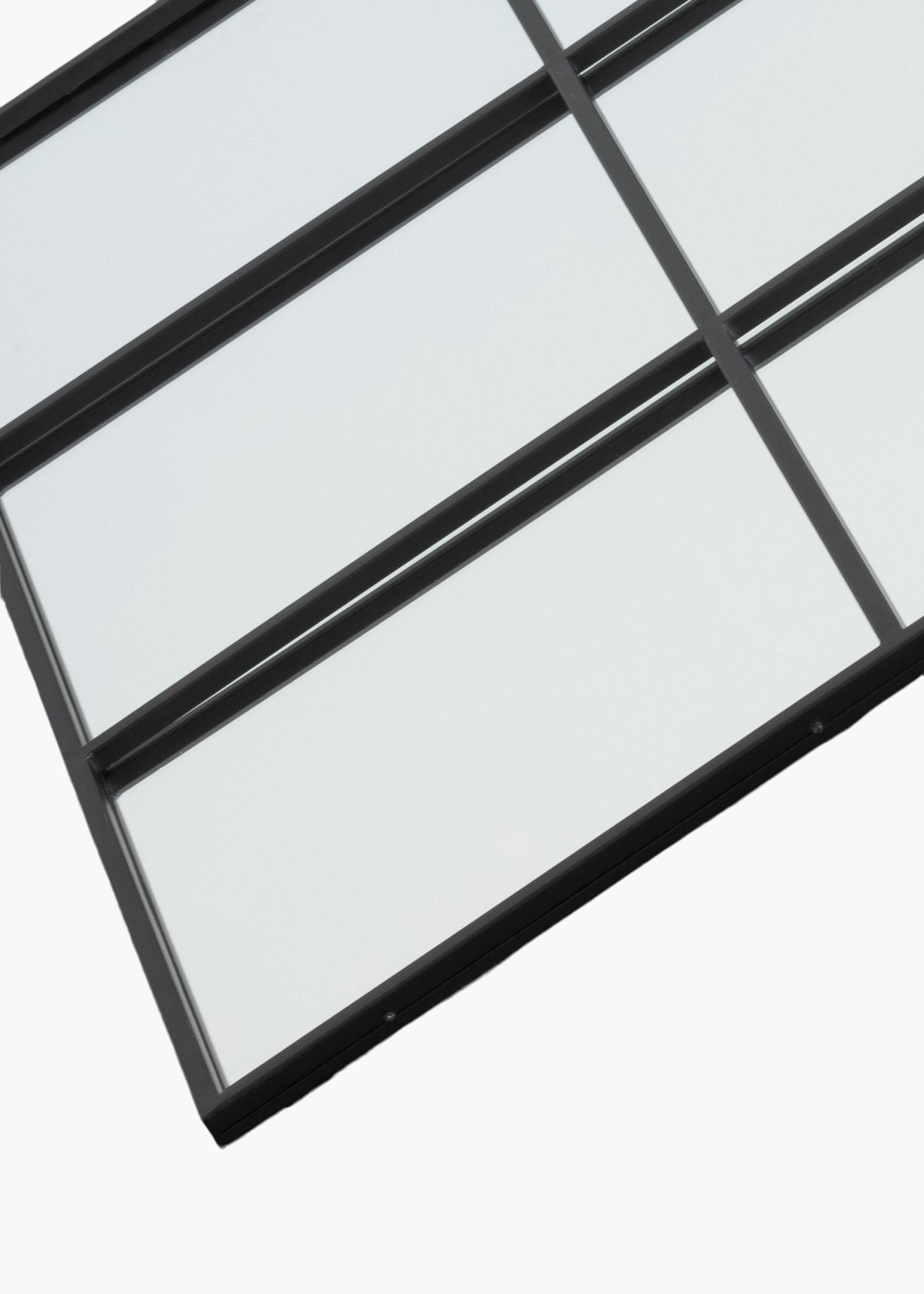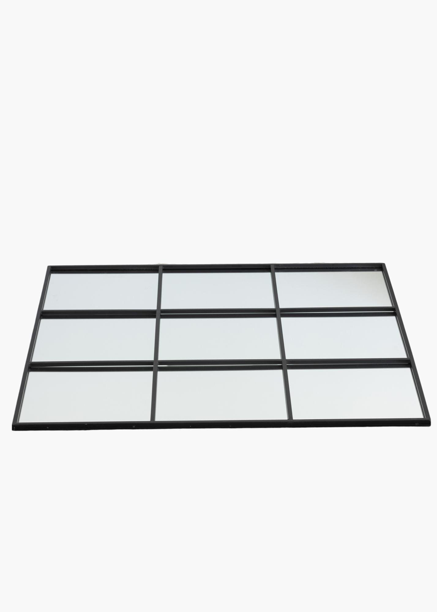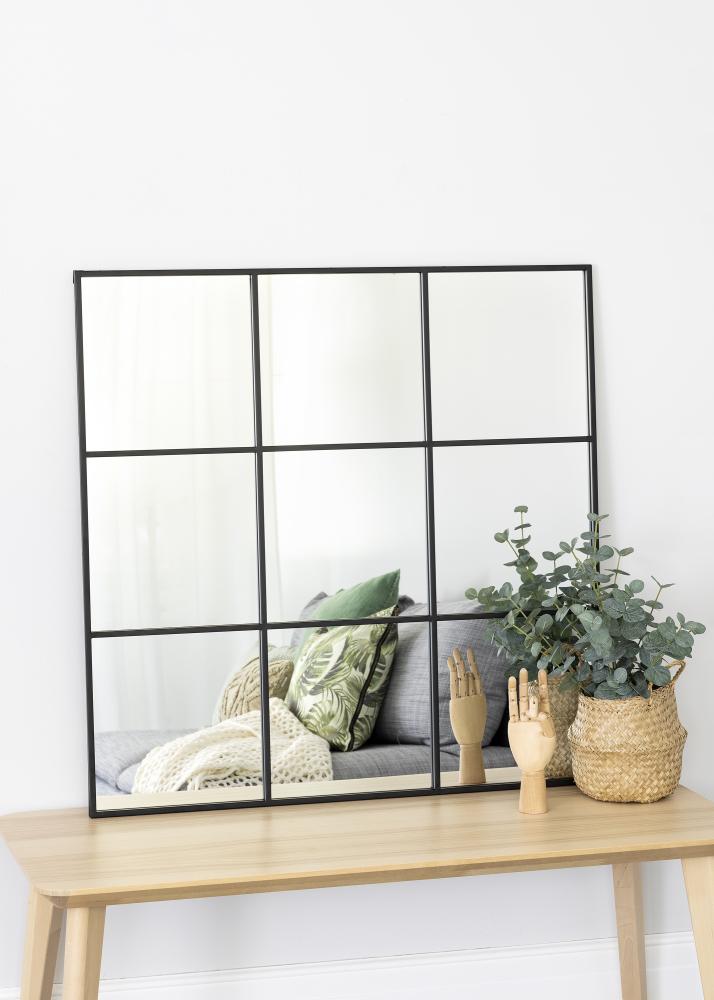 Dieser tolle Wandspiegel in quadratischer Form überzeugt durch das einfache, klare Muster bestehend aus Quadraten. Die Rahmen der einzelnen Quadrate bestehen aus schmalen, schwarzen Metall-Linien, die dem Wandspiegel zu seinen industriellen Look verhelfen. Die viereckige Formgebung verleiht dem Wandspiegel gleichzeitig einen stilsicheren, stilvollen Ausdruck. Dieser ansprechende, moderne Wandspiegel passt gut in Flur, Diele, Eingangsbereich, aber auch in Küche oder Schlafzimmer, um optisch für mehr Weite zu sorgen und als hübsche Wanddekoration den Raum zu schmücken. Der Wandspiegel ist mit einer Wandhalterung ausgestattet. Die Größe des Spiegels beträgt 90x90 cm.