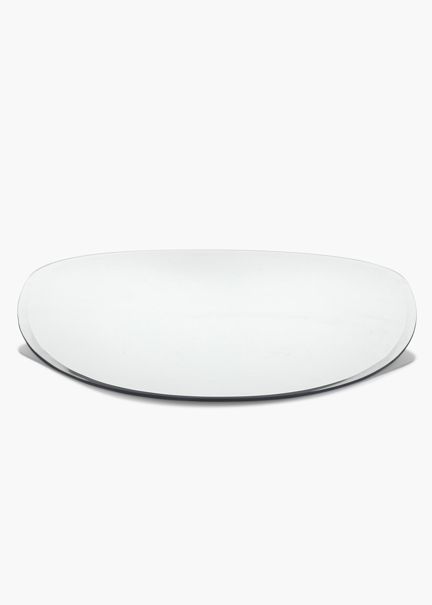 Dieser asymmetrische Spiegel von KAILA wird zu einem modernen Element in deiner Inneneinrichtung. Der Spiegel verfügt über eine weiche Form, die man fast als ungleichmäßig oval bezeichnen kann. Der Wandspiegel ist dünn und hat keinen Rahmen, wodurch sein Eindruck von Eleganz noch verstärkt wird. Zusätzlich verfügt er über einen außergewöhnlich eleganten facettierten Rand.
