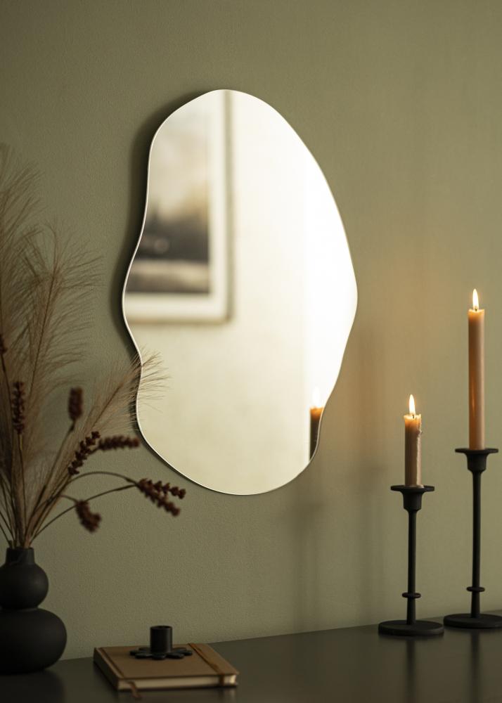 KAILA Wide Cloud ist ein stilvoller Spiegel mit einer einzigartigen und sanft welligen Form. Der Spiegel misst 40x56 cm und hat ein modernes Design, das zu einem eleganten Einrichtungselement im Haus wird. Perfekt, um ein luftiges und dekoratives Gefühl im Raum zu schaffen.