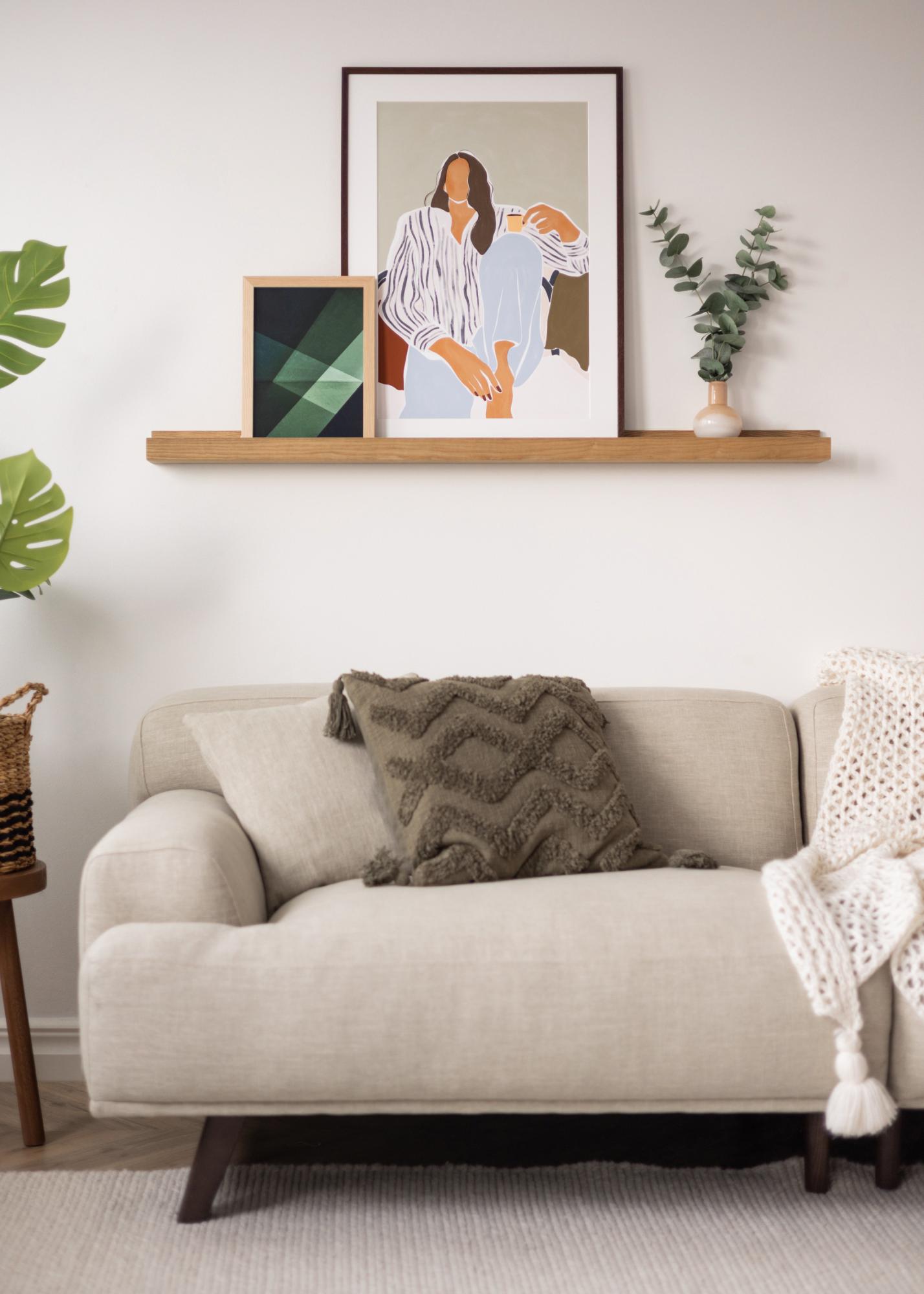 Mit einem praktischen Bilderregal präsentieren Sie Ihre Bilder auf elegante Weise und haben zudem hervorragende Möglichkeiten, Ihre Wandkunst zu variieren. Dieses Bilderregal ist aus massiver Eiche gefertigt und hat ein stilvolles Design mit einfachen, geraden Linien. Das Regalbrett selbst hat eine gefräste Nut, die Ihren Bildern Halt gibt und ihnen einen schönen Winkel verleiht, wenn sie an die Wand gelehnt stehen. Das Bilderregal ist in mehreren Längen erhältlich, wobei diese Variante eine Länge von 130 cm hat. Das Bilderregal hat auch vorgebohrte Löcher und um das Ganze noch etwas einfacher zu machen, sind passende Schrauben und Dübel enthalten.