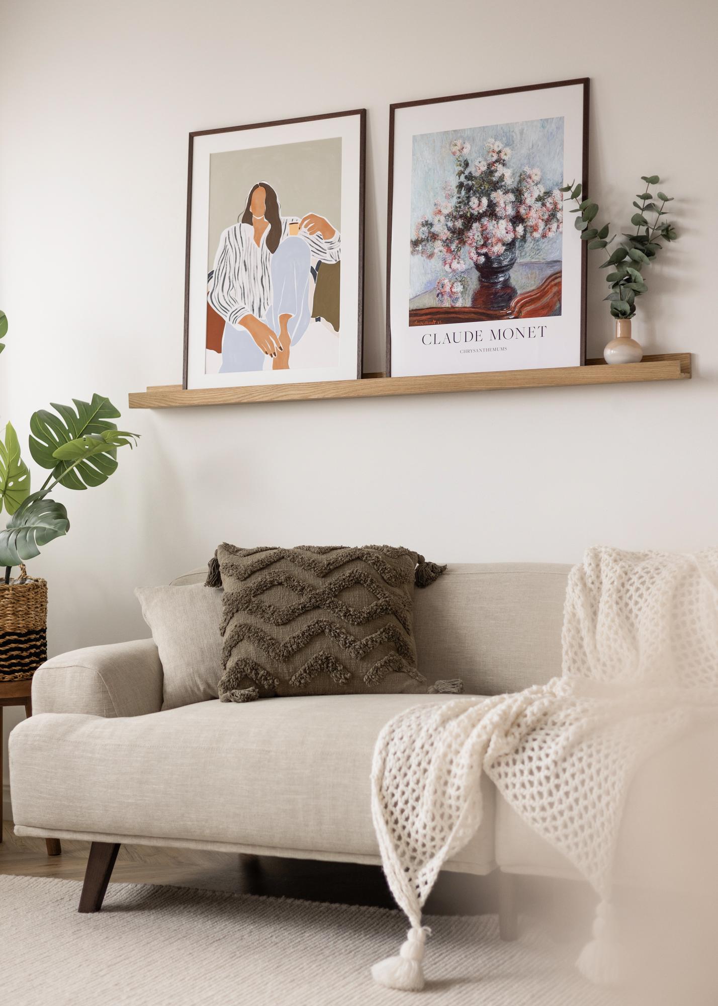 Mit einem praktischen Bilderregal präsentieren Sie Ihre Bilder auf elegante Weise und haben zudem hervorragende Möglichkeiten, Ihre Wandkunst zu variieren. Dieses Bilderregal ist aus massiver Eiche gefertigt und hat ein stylisches Design mit einfachen, geraden Linien. Das eigentliche Regalbrett hat eine eingefräste Rille, die Ihren Bildern Halt gibt und ihnen einen schönen Winkel verleiht, wenn sie gegen die Wand gelehnt stehen. Die Bilderleiste ist in mehreren verschiedenen Längen erhältlich, wobei diese Variante eine Länge von 150 cm hat. Das Bilderregal hat auch vorgebohrte Löcher, und um es noch ein wenig einfacher zu machen, sind auch geeignete Schrauben und Dübel im Lieferumfang enthalten.