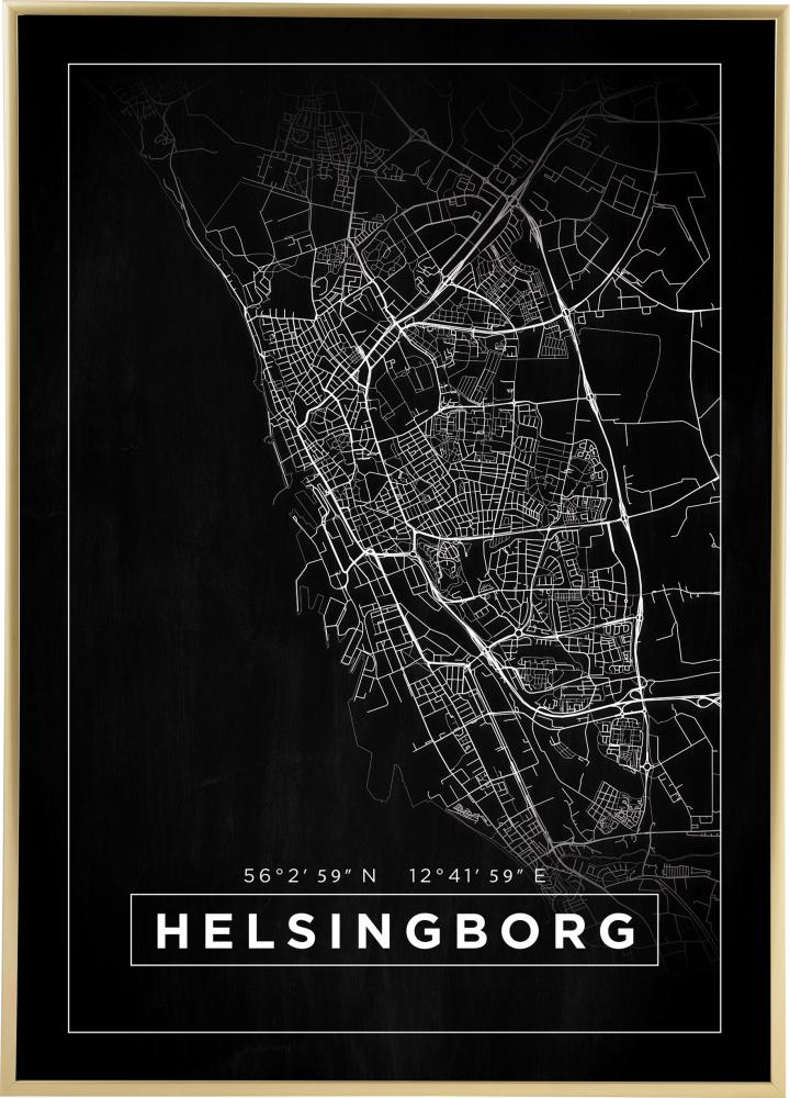 Karte - Helsingborg - Schwarz (13x18 cm)