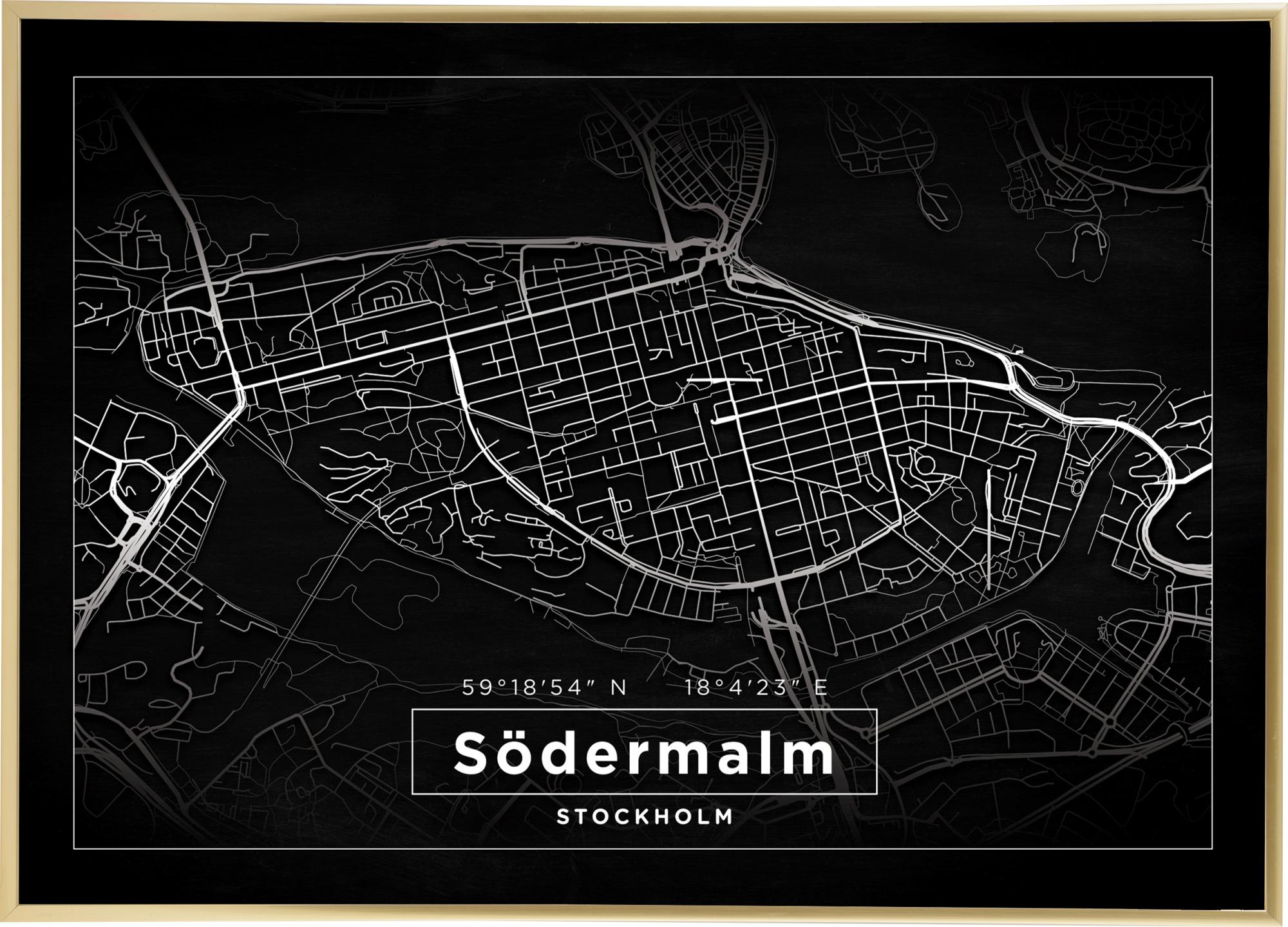 Karte - Södermalm - Schwarz (13x18 cm)