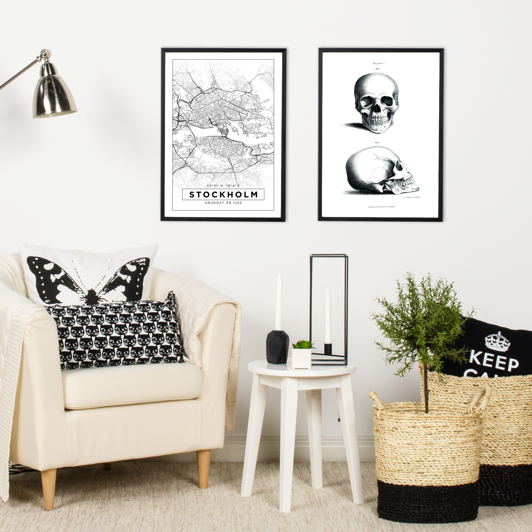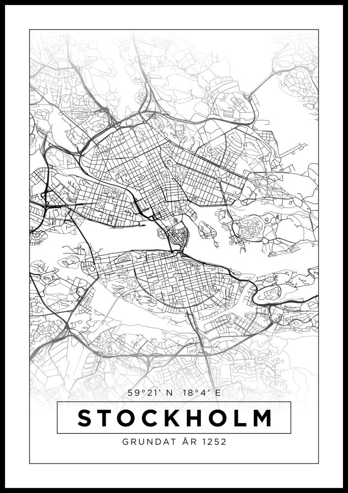 Geben Sie Stockholm einen Ehrenplatz an Ihrer Wand, indem Sie sie mit diesem stilganzen Poster dekorieren! Das Motiv zeigt eine schwarze Stadtkarte auf weißem Hintergrund. Unten befindet sich der Text “Stockholm, gegründet 1252“ zusammen mit den Koordinaten. Rund um den Namen und das gesamte Motiv verlaufen schwarze, schmale Linien. Wählen Sie aus sieben verschiedenen Größen! Kombinieren Sie das Poster gerne mit einem schicken Bilderrahmen aus unserem großen Sortiment.
