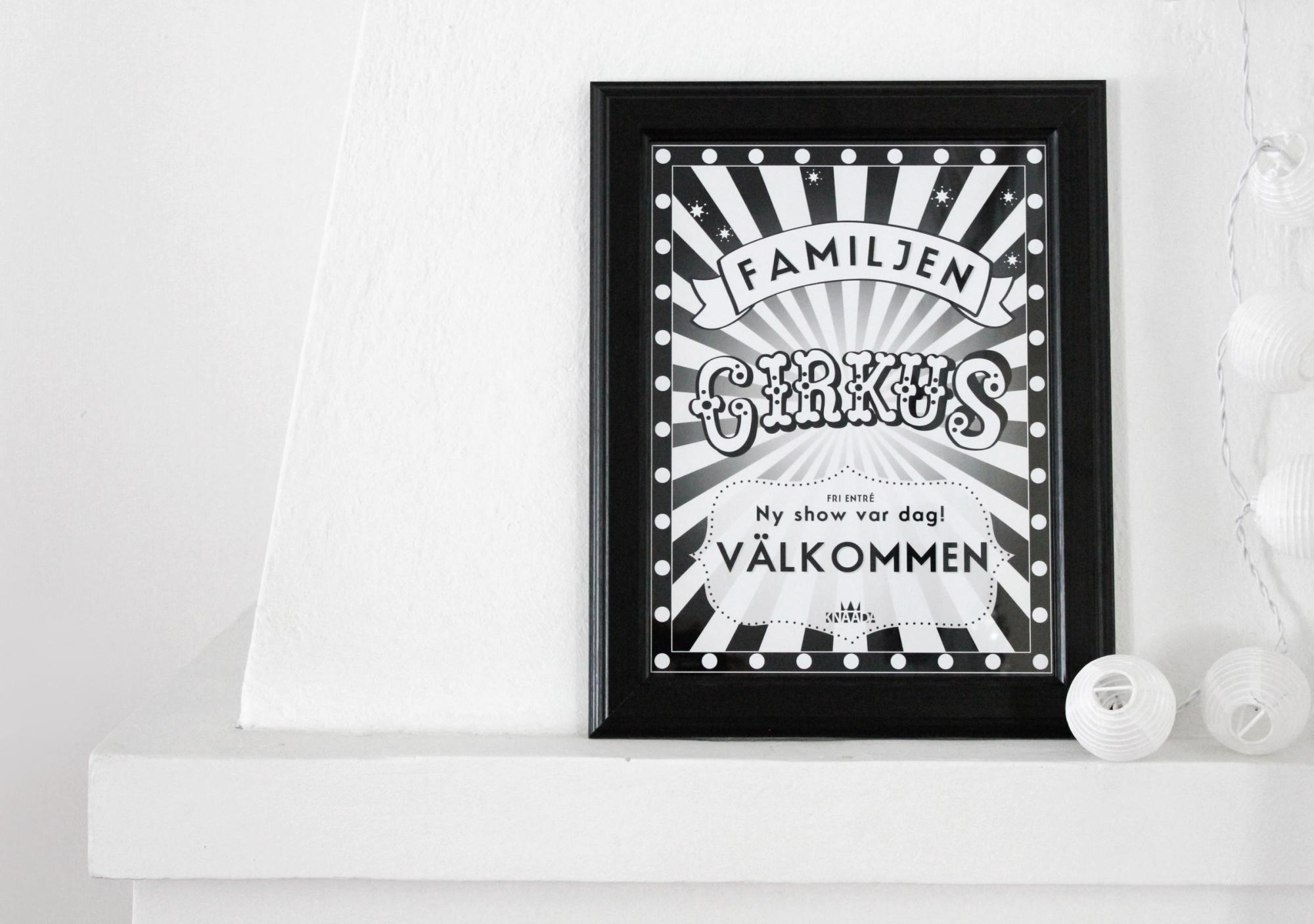 Posters ”Familjen Cirkus” und ”Fri entré, ny show var dag! Välkommen” lädt zu freien Interpretationen der Familie ein, deren Wände es verschönert. Vermutlich eine Familie, die einen guten Humor hat und sehr offen für neue Ideen ist. Das Motiv enthält viele aufregendes Details...">