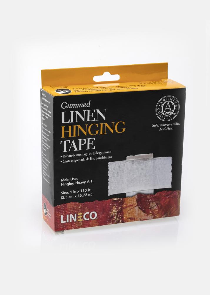 Gummiertes, säurefreies Leinen-Klebeband. Zum Aufhängen schwererer Kunstwerke. Übe vor dem Gebrauch 15 Minuten lang Druck auf den Streifen aus. 25 mm × 45,72 mtr, 63 gm2.
