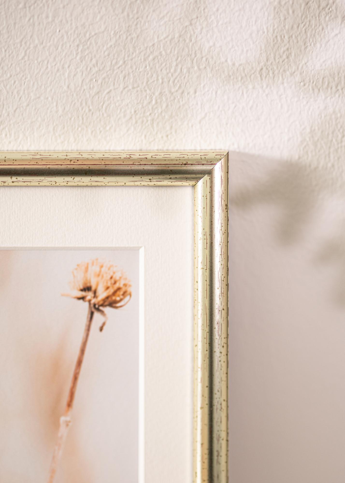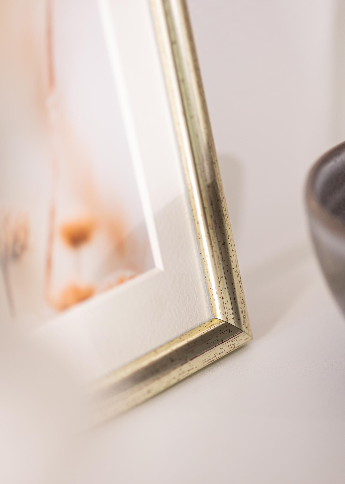 "Newline Silber" hat ein schmales Rahmenprofil (15 mm), welches das Augenmerk auf das Motiv im Rahmen richtet. Die Farbe des Fotorahmens ist eine Mischung aus Silber und Gold.