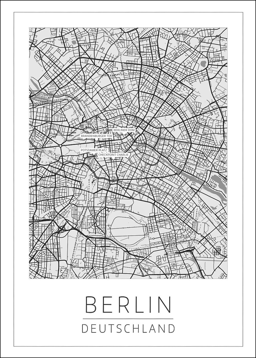 Nimmt Berlin einen besonderen Platz in Ihrem Herzen ein? Dann dekorieren Sie doch einfach Ihre Wand mit einer schönen Karte dieser Stadt! Dieses Poster ist schwarzweiß und hat den Text „Berlin, Deutschland“, gedruckt mit einer stilganzen, weichen Schriftart. Komplettieren Sie das Poster mit einem schwarzen Rahmen oder fangen Sie die künstlerische Seite Berlins mit einem farbenfrohen Rahmen ein. Wählen sie zusätzlich noch ein weißes Passepartout, um dem Druck einen zusätzlichen Hauch von Luxus zu verleihen. P>