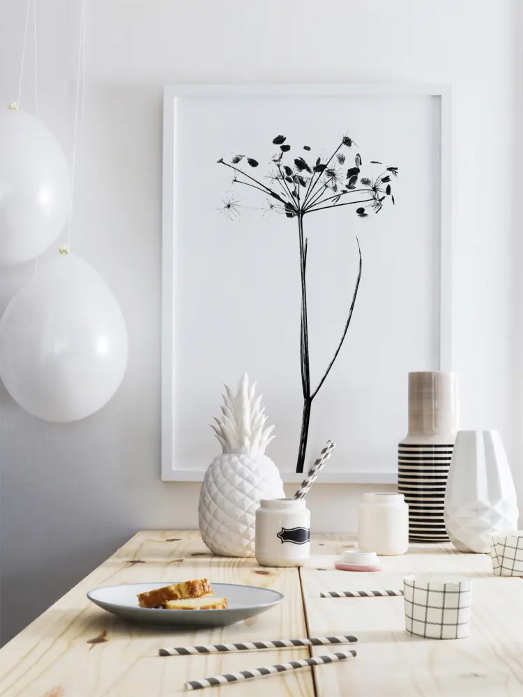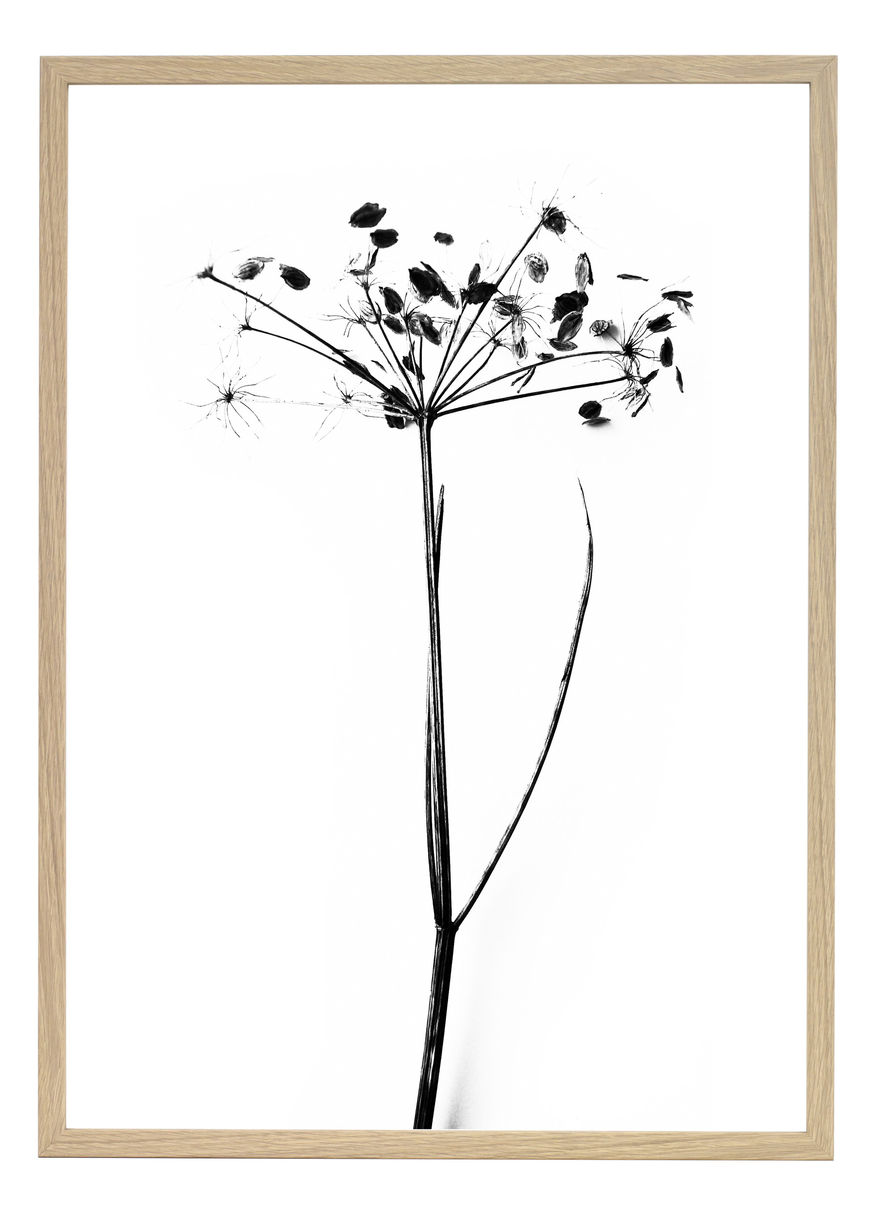 Poster mit der Silhouette einer verblühten Blume. Der grafische, schwarze Druck auf einem weißen Hintergrund ergibt ein schönes Motiv, das zu jeder Einrichtung passt. Das Bild lässt sich sehr gut mit den Postern ''Rose is A Rose is A Rose'' und '''Honey Honey'' oder anderen Postern mit Gewächsmotiven an einer Bilderwand kombinieren. Rahmen Sie das Poster in einem weißen Rahmen ein und lassen Sie das Motiv für sich sprechen, oder Sie nehmen einen schwarzen Rahmen, um die Schwärze im Bild zu verstärken. Das Poster kann man auch gut mit einem Draht befestigen.