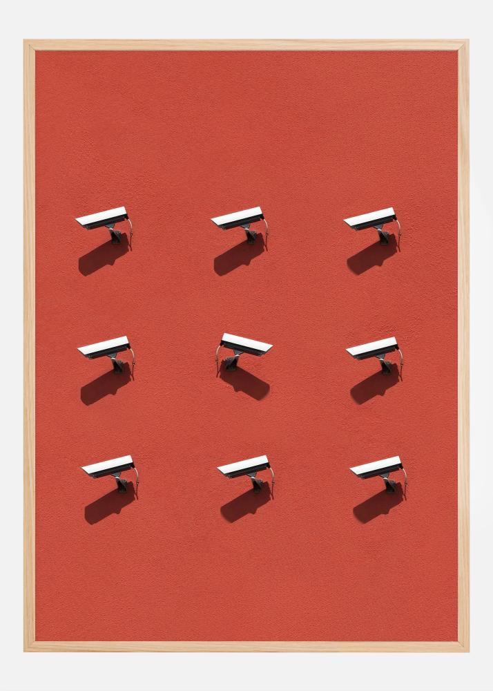 Der tiefe Rotton im Hintergrund bildet einen starken Kontrast zu den schwarz-weißen Kameras und erzeugt ein Gefühl der Wachsamkeit und Ernsthaftigkeit. Dieser Druck passt perfekt in eine moderne Einrichtung, in der Kunst auf gesellschaftliche Fragen trifft, und ist ein ideales Gesprächsthema für Büros, Arbeitsräume oder Wohnzimmer. Lassen Sie dieses Poster Teil Ihrer Einrichtung werden und zu Diskussion und Bewusstsein über die Welt, in der wir leben, inspirieren.