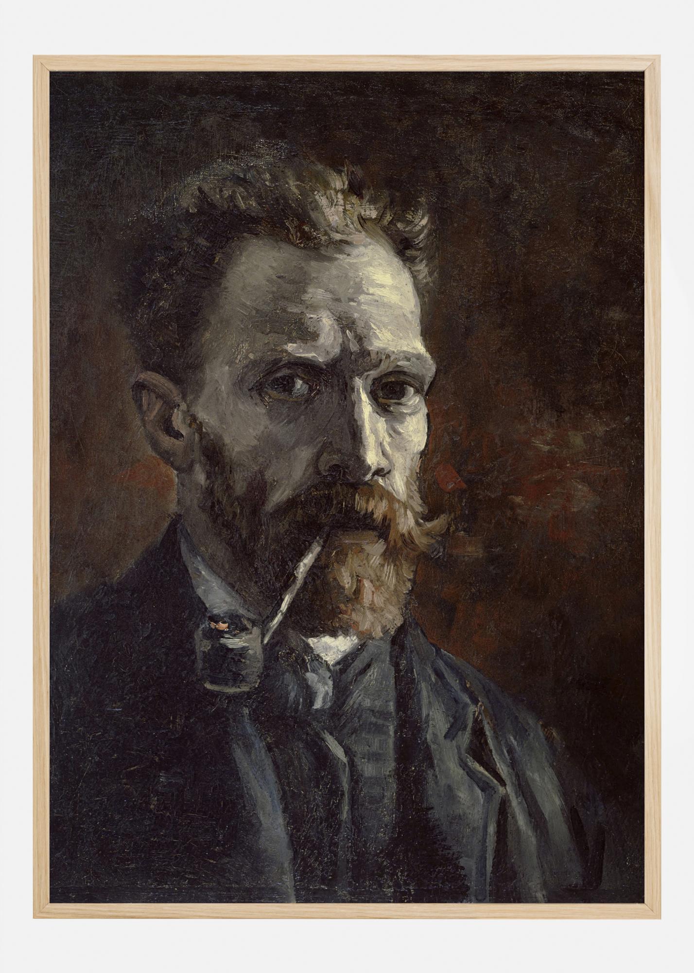 Ein zauberhaftes Gemälde eines Mannes mit einer Pfeife. Das antike Kunstwerk hat einen rostfarbenen Hintergrund, der das Haar und den Bart des Mannes hervorhebt. Der Mann ist mit einer schwarzen Jacke bekleidet, und sein weißer Hemdkragen ist zu sehen. Ein perfekter Druck, um ihn in Ihrem Arbeitszimmer aufzuhängen.