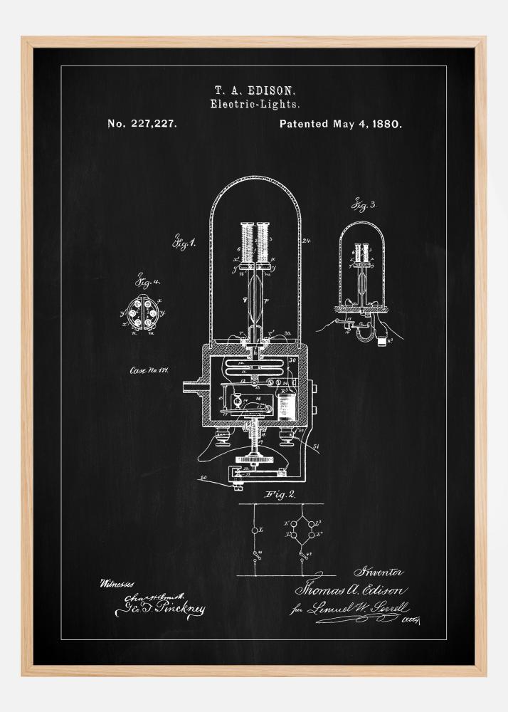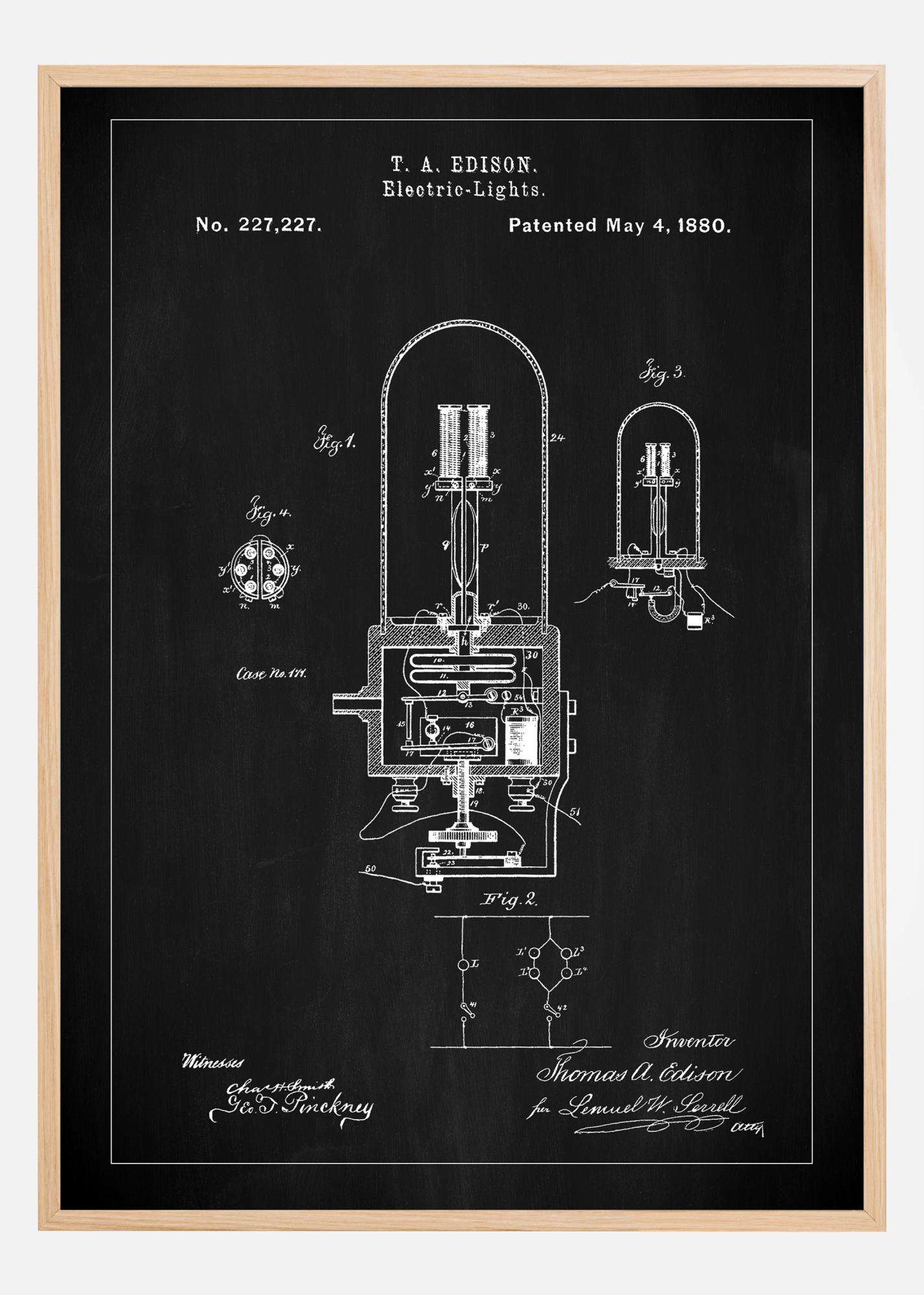 Dieses einzigartige Patentposter präsentiert eine der revolutionärsten Erfindungen der Geschichte – T.A. Edisons elektrisches Licht, das offiziell am 4. Mai 1880 unter der Patentnummer 227.227 patentiert wurde. Das Motiv wird in einem stilvollen Schwarz-Weiß-Design dargestellt und fesselt den Betrachter mit seiner Komplexität und seinem historischen Wert. Es ist ein fantastischer Gesprächsanlass und ein stilsicheres Einrichtungselement, das perfekt in jedes Zuhause oder Büro mit einer Vorliebe für Wissenschaft und Design passt.
