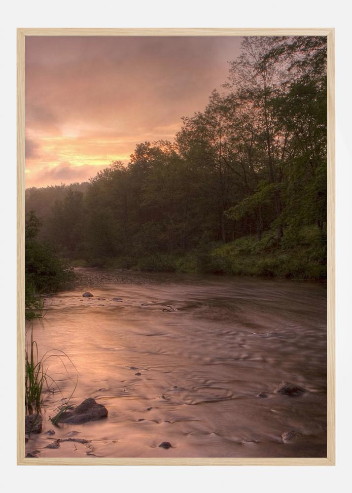 Ein atemberaubender Druck eines schlammigen Flusses, der auf beiden Seiten des Waldes verläuft. Die orangefarbene Abendkugel bahnt sich ihren Weg durch die Wolken und verleiht der Szene einen subtilen Hauch von Orange. Hängen Sie diesen zauberhaften Druck in Ihr Wohnzimmer und lassen Sie sich vom Fluss treiben.