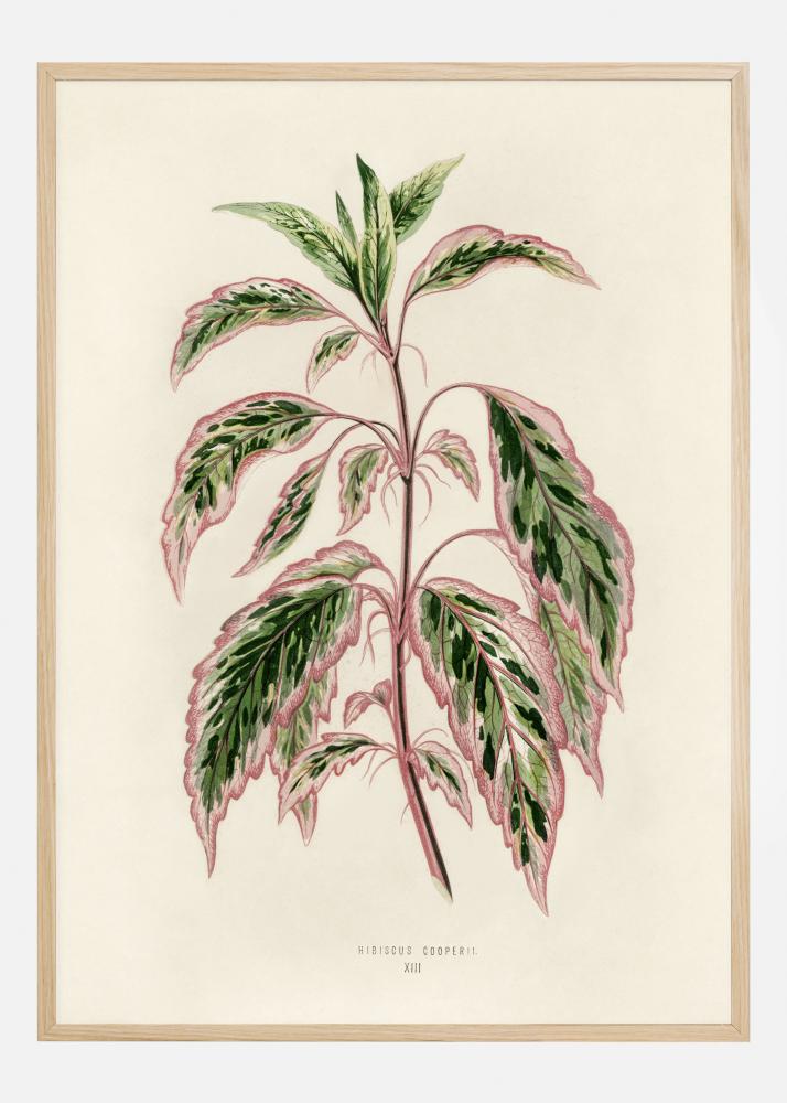 Ein zarter Druck eines Plectranthus scutellarioides. Der zarte beigefarbene Hintergrund hebt die schönen rosa und grünen Blätter hervor. Mit ihren zart getönten Blättern vermittelt diese hängende Pflanze ein Gefühl der Ruhe. Ein perfektes Geschenk für jeden, der Pflanzen liebt.
