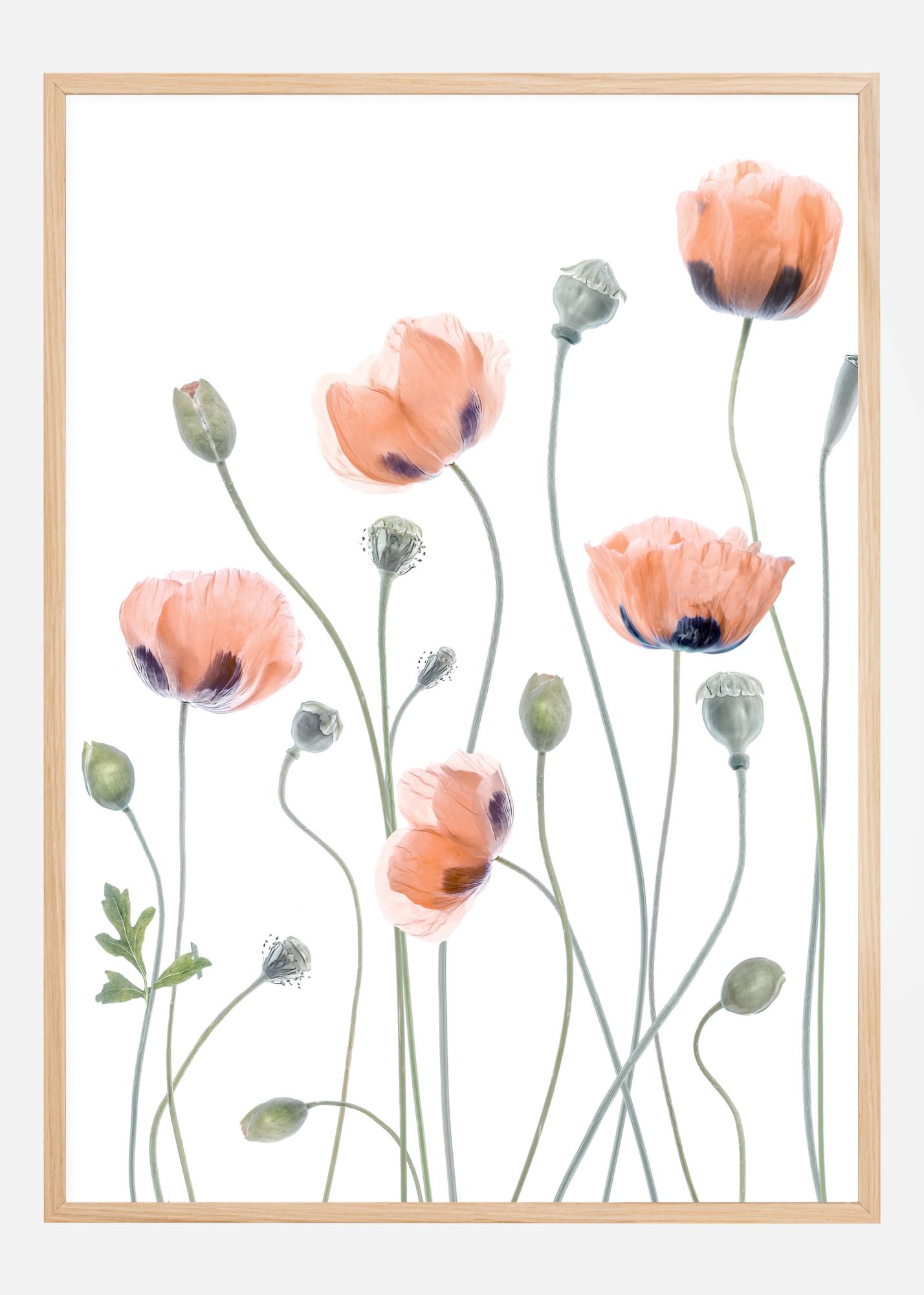 Ein reizvoller Druck von Mohnblumen, die sich mit getrockneten Gräsern verflechten. Die pfirsichfarbenen Mohnblumen auf weißem Hintergrund harmonieren perfekt mit den hellgrünen Gräsern. Jede Mohnblume hat eine andere Höhe. Ein wunderschöner, beruhigender Druck, der in einer Landhausküche hängen sollte.