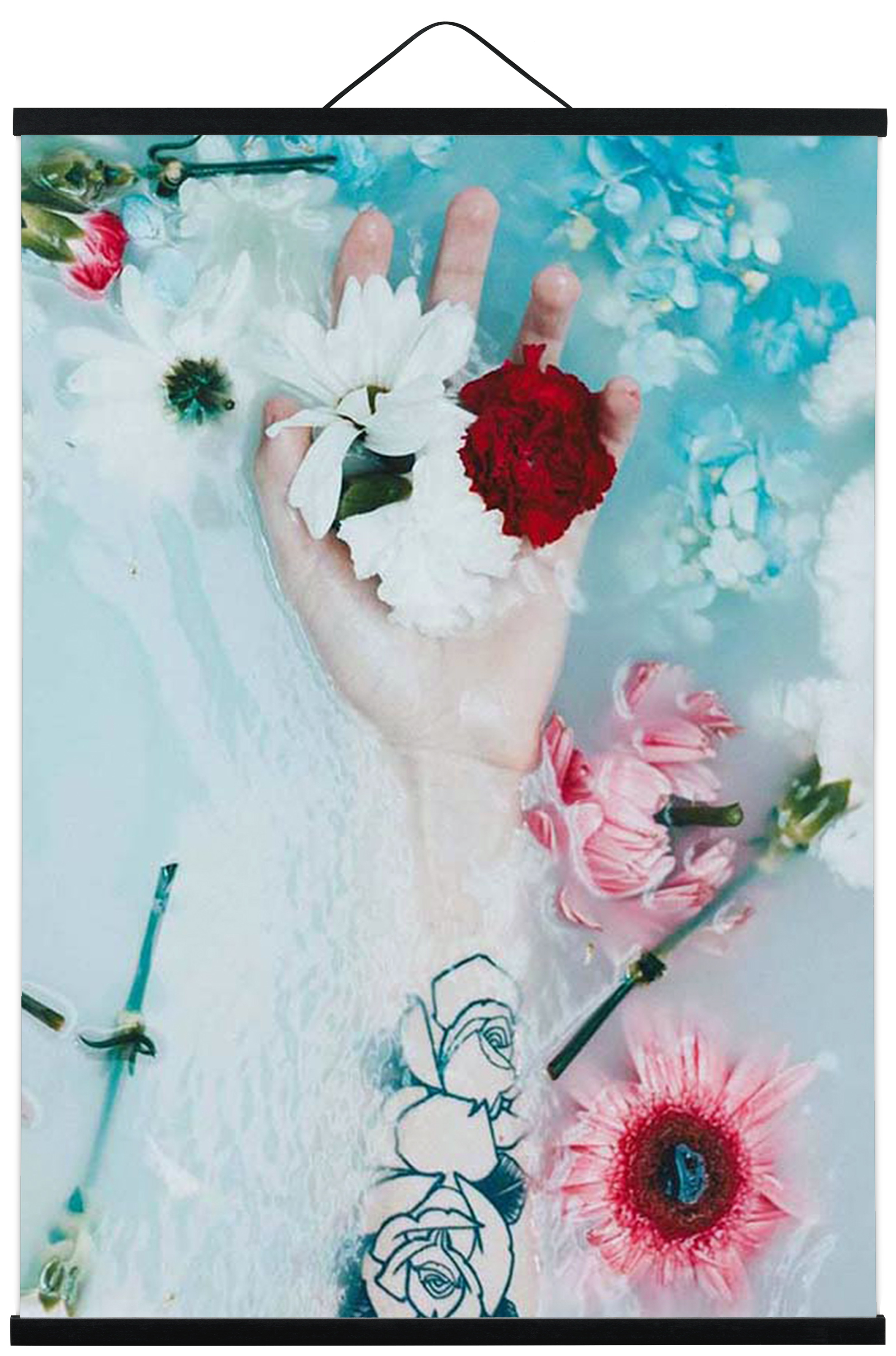 Das Poster kannst du einfach zwischen den beiden Posterleisten mit Hilfe der dazugehörenden Magneten befestigen.