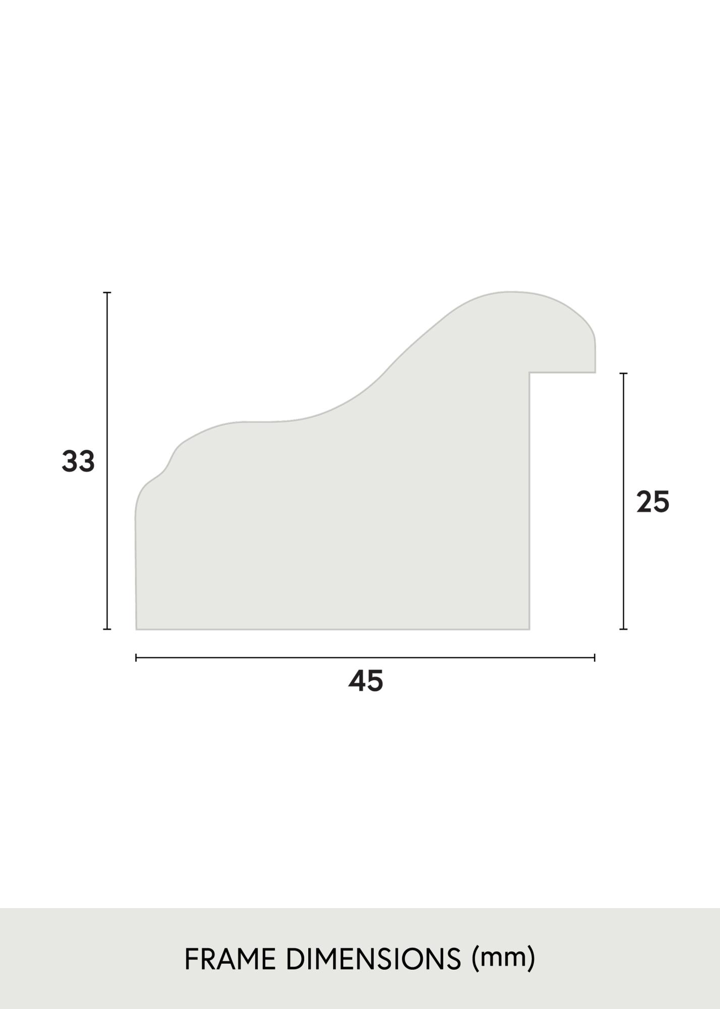 Der Rahmen besteht aus Kompositmaterial, was ihm sowohl Stabilität als auch Leichtigkeit verleiht. Mit einer Tiefe von 33 mm bietet dieser Rahmen ein robustes Gefühl und behält dennoch ein elegantes Profil. Die glatte Oberfläche und der goldene Ton sorgen für einen zeitlosen Ausdruck, sodass er sich hervorragend für traditionelle, schlichte oder auch aufwendigere Einrichtungsstile eignet.