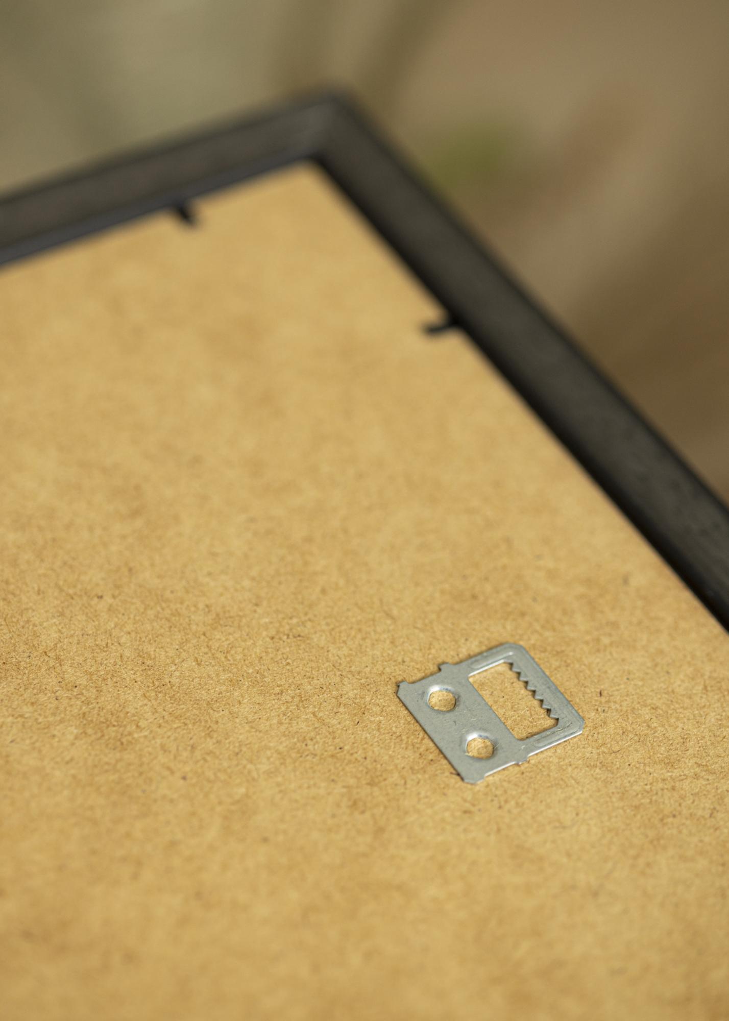 Dieser Bilderrahmen, der sich auch prima als Fotorahmen eignet, ist mit Acrylglas ausgestattet, das sich, im Unterschied zu echtem Glas, durch ein geringeres Gewicht und eine höhere Bruchfestigkeit auszeichnet. Der Bilderrahmen ist mit praktischen Wandhalterungen für die Aufhängung im Hoch- als auch im Querformat versehen. Auf der Rückseite des Bilderrahmens befinden sich kleine biegbare Stifte, um die Rückwand zu lösen und das Bild einzulegen. Bei Bilderrahmen bis zu einer Größe von 21x29,7 cm ist ein Ständer zum Aufstellen des Bilderrahmens enthalten.