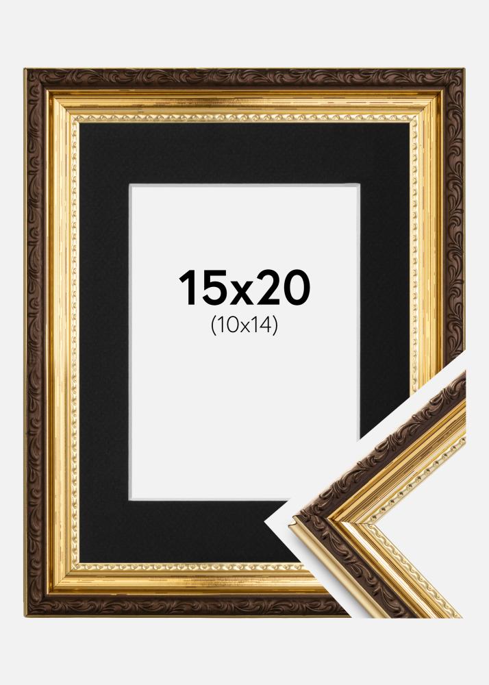 Rahmen Abisko Gold 15x20 cm - Passepartout Schwarz 11x15 cm