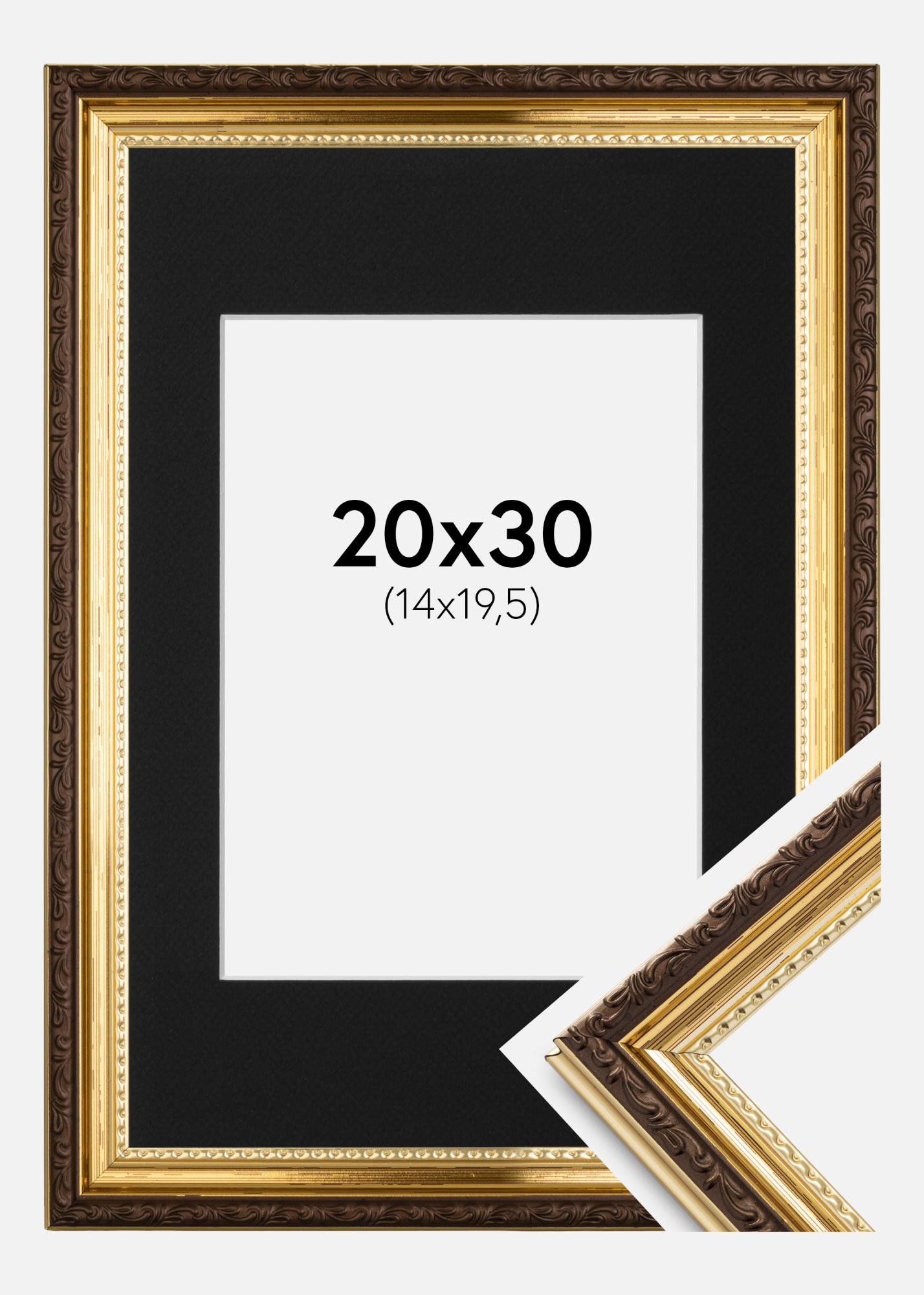 Rahmen Abisko Gold 20x30 cm - Passepartout Schwarz 15x21 cm (A5)