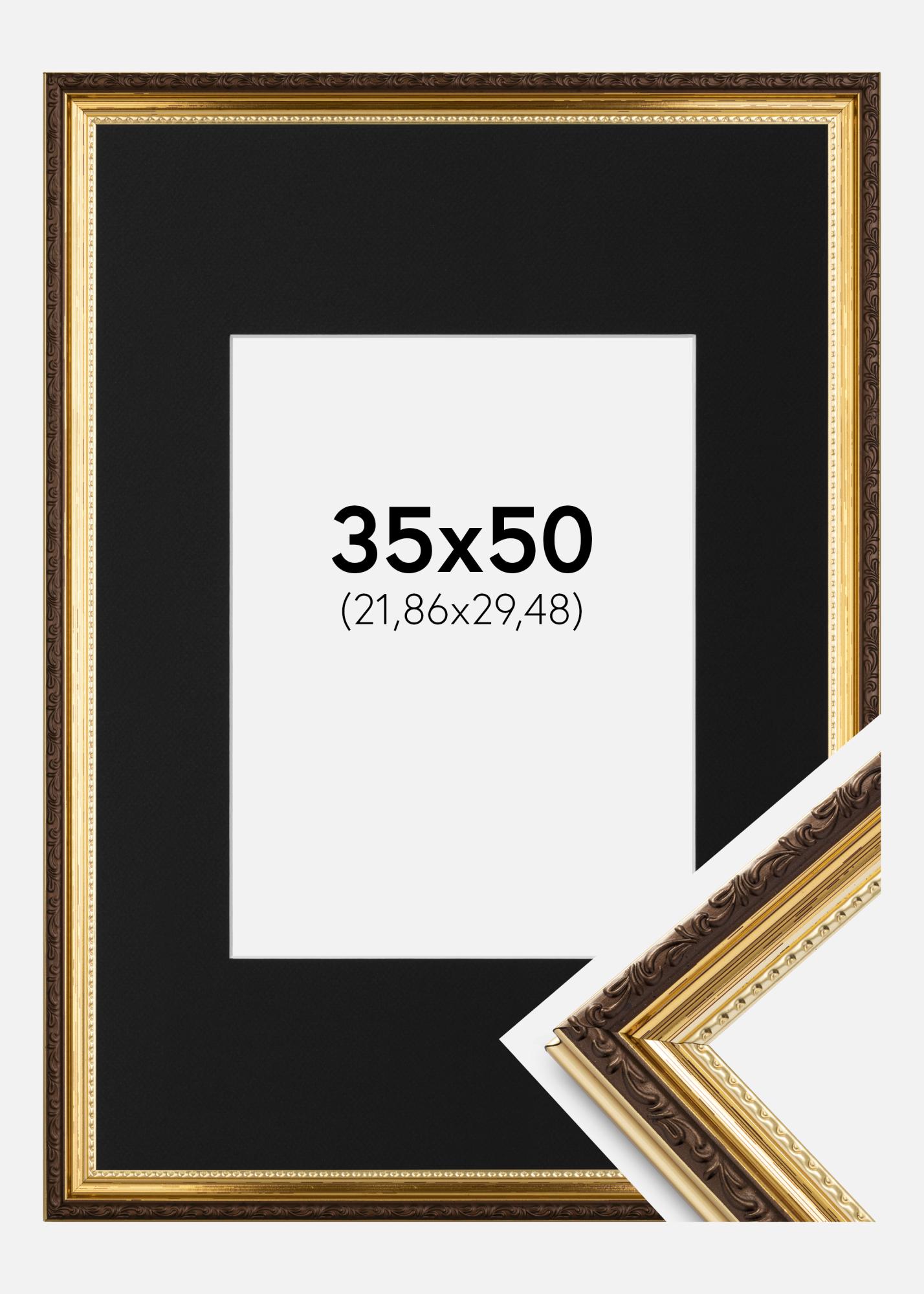 Rahmen Abisko Gold 35x50 cm - Passepartout Schwarz 9x12 inches (22,86x30,48 cm)